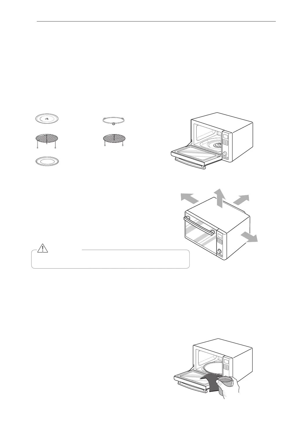 Open your oven door by pulling the door handle. Place the rotating ring inside the oven and place the glass tray on top.