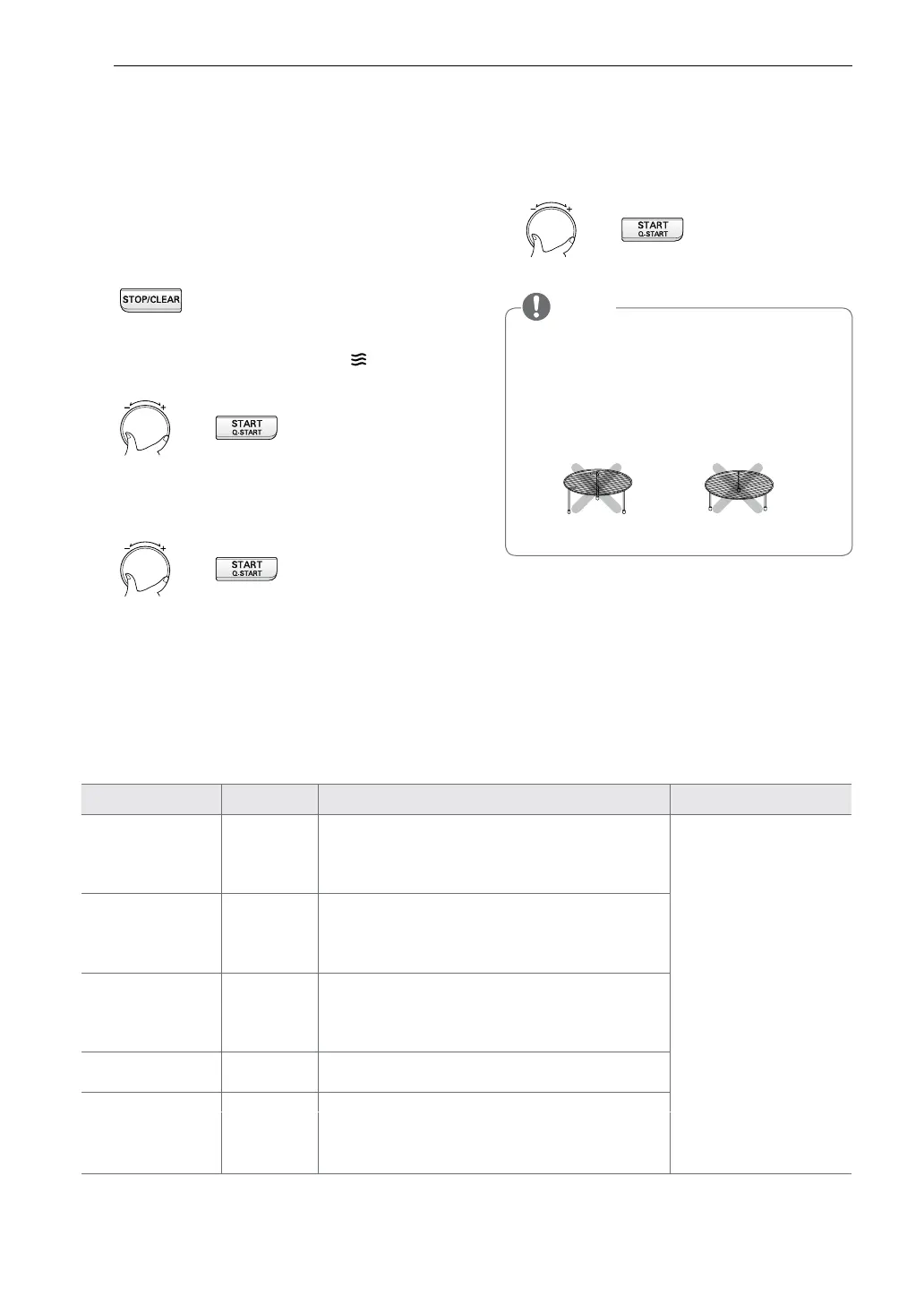 • Food to be cooked should be placed in a