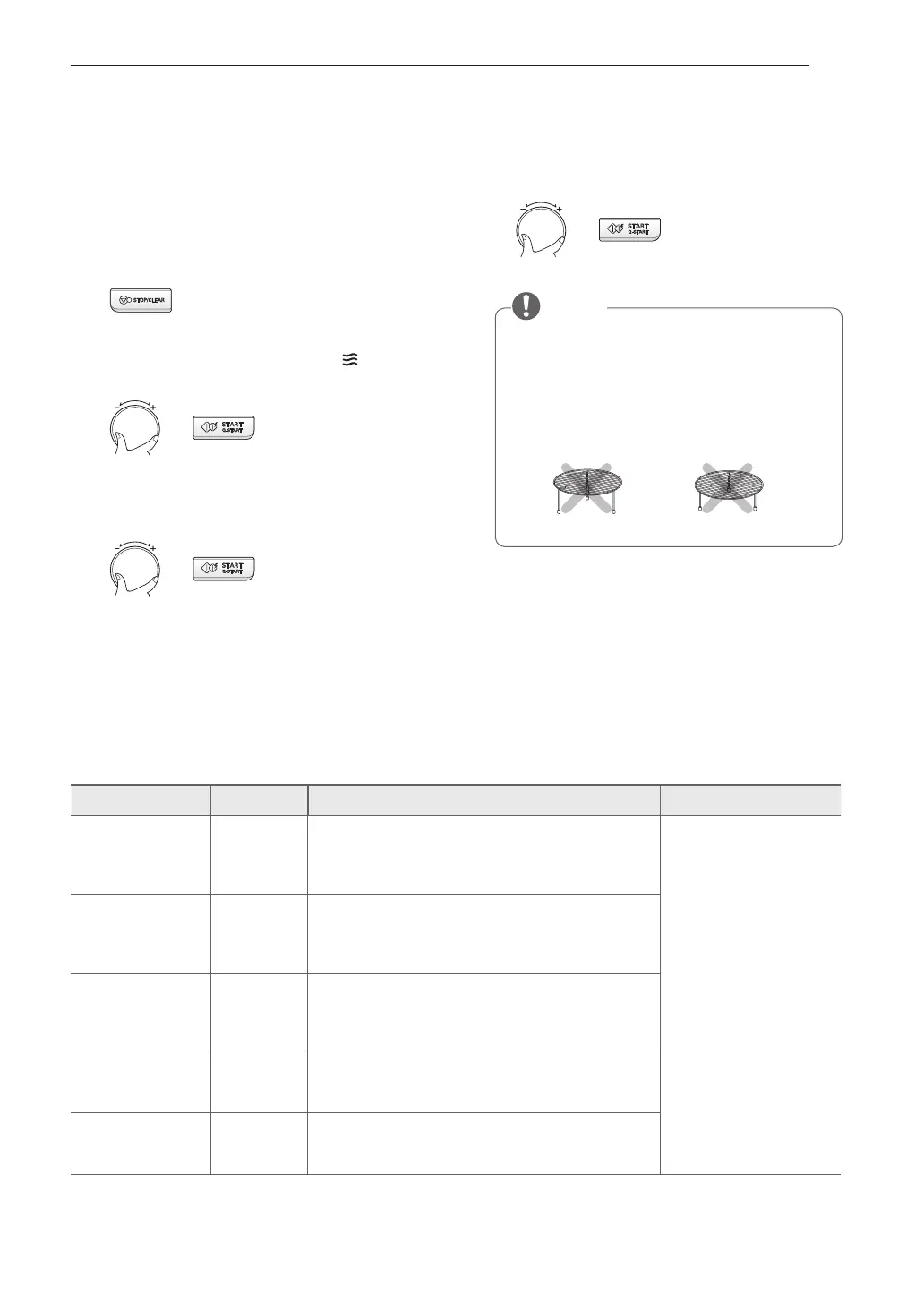 • Food to be cooked should be placed in a