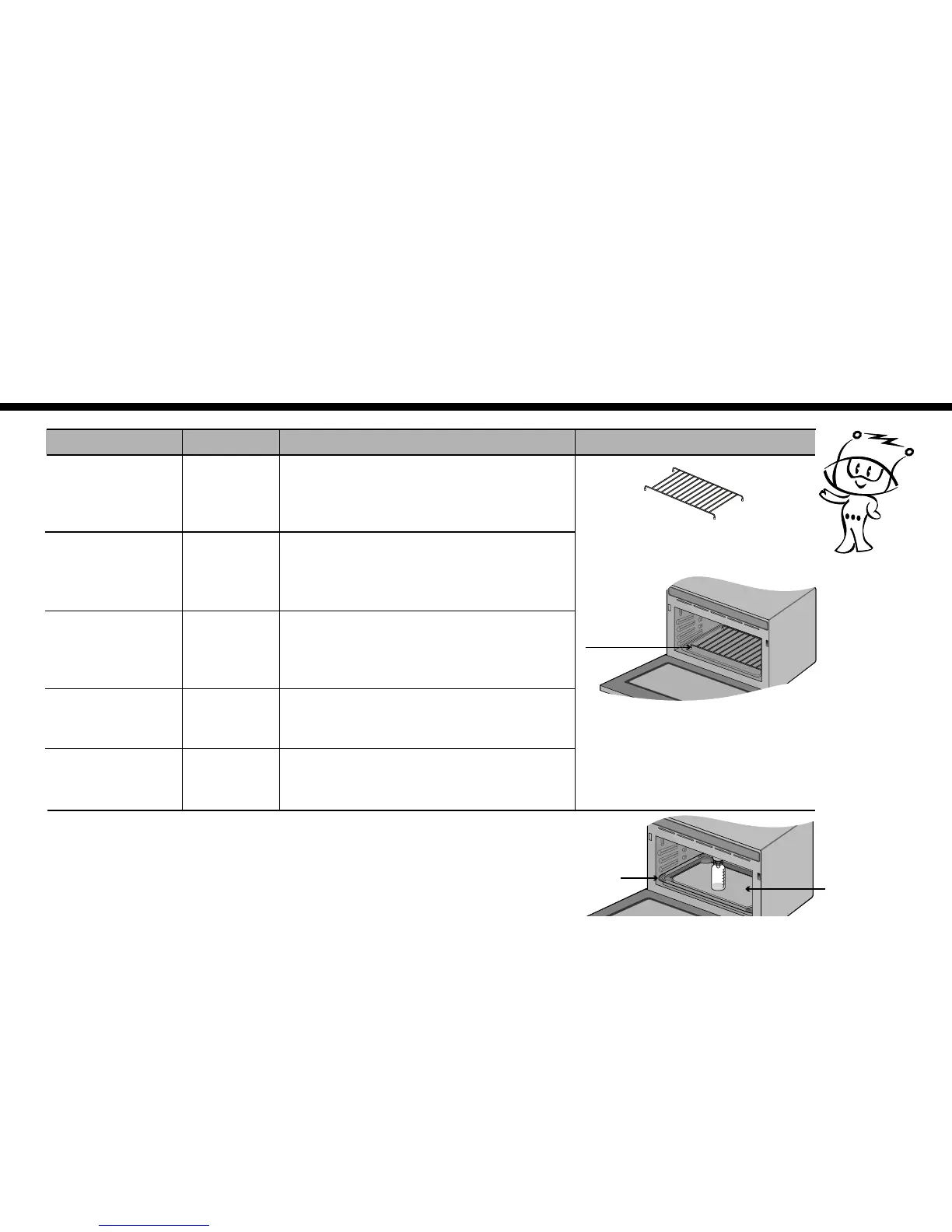 The table below shows the examples of food and their recommended cooking power levels for use with this oven.