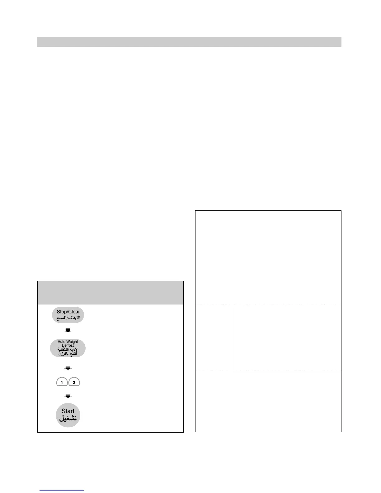automatically sets the defrosting time and power levels