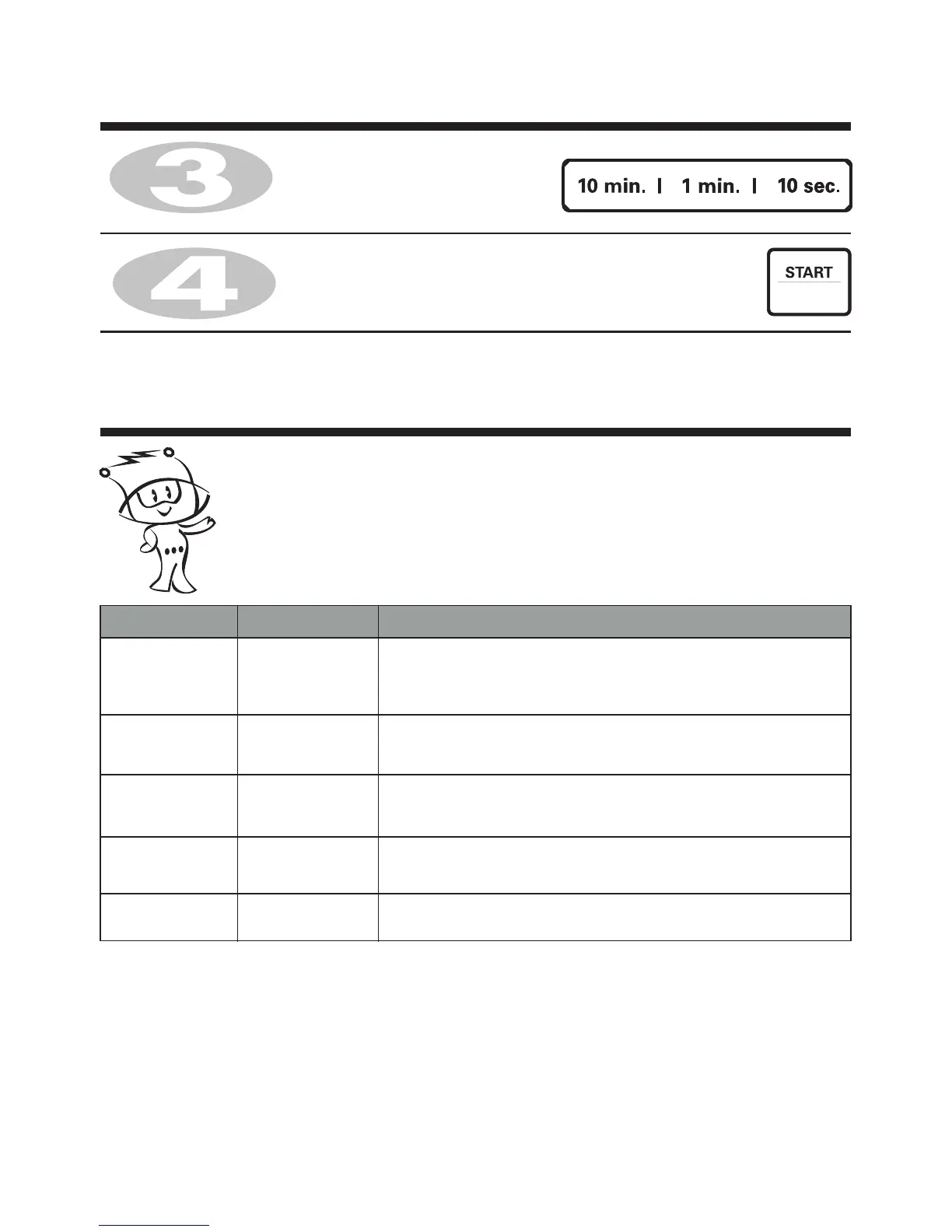 over cooking. The table below shows the examples of food and their recommended cooking power