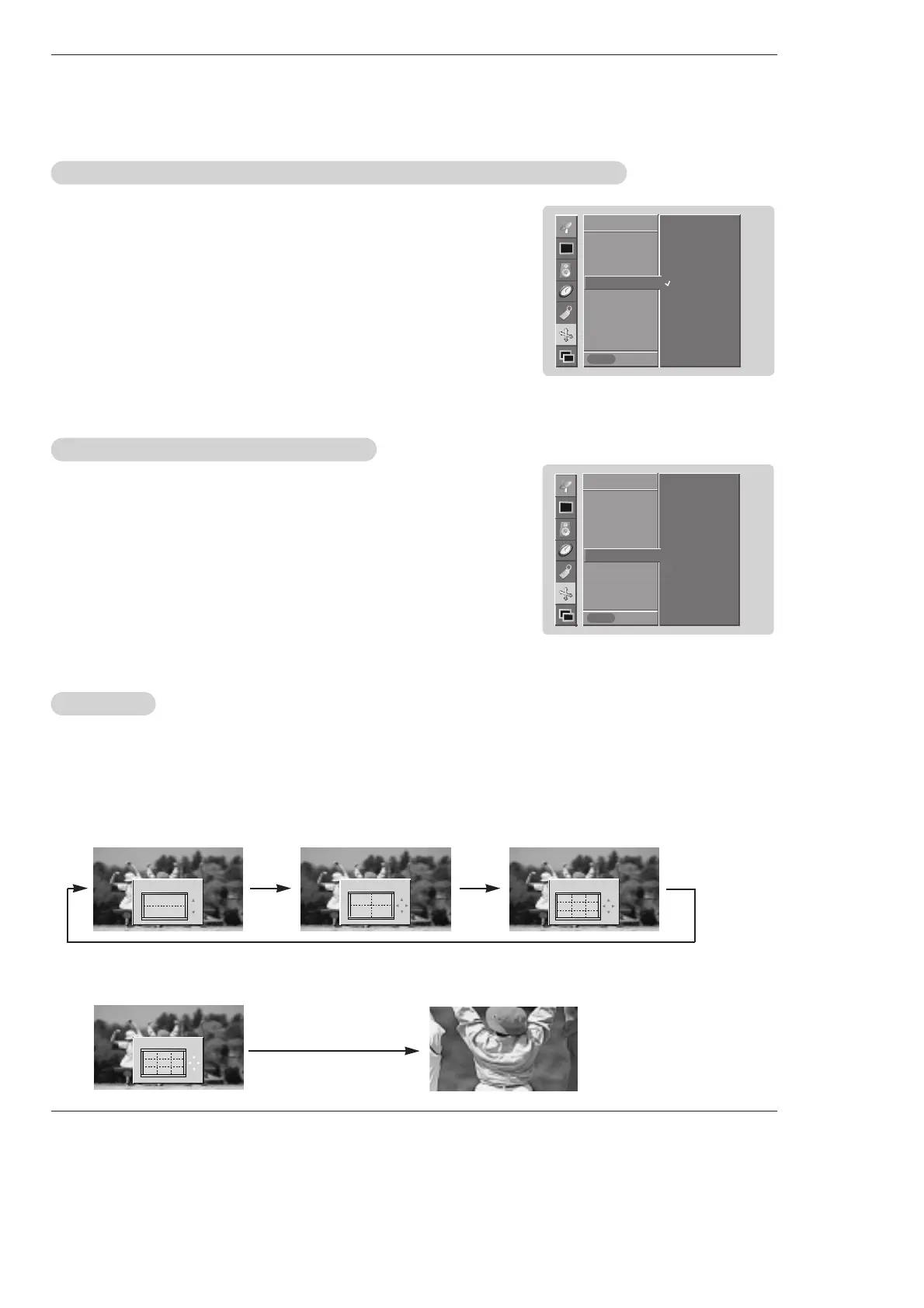 - Reset is unique to each function: Manual config., Position, Split zoom, PIP posi-