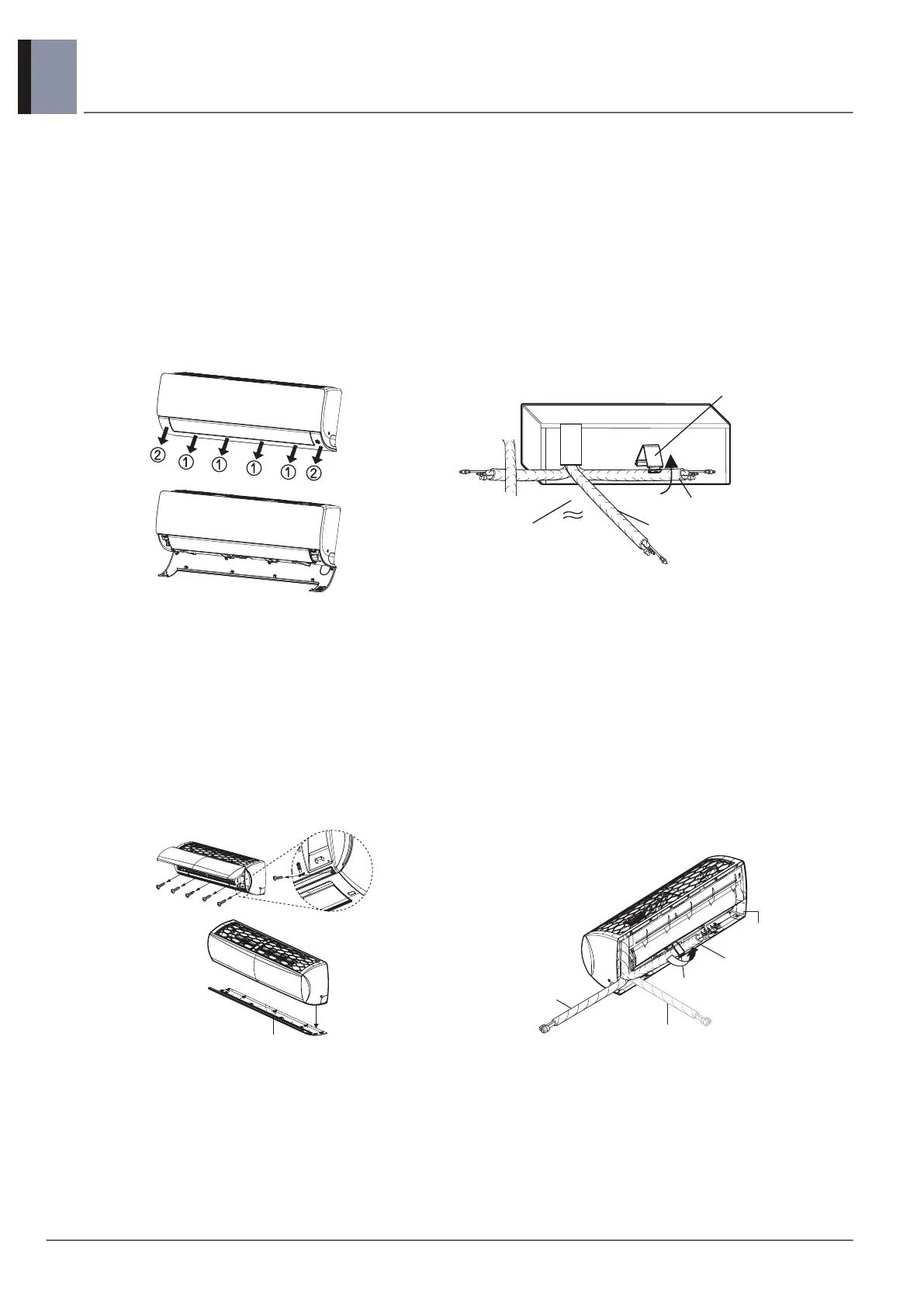 1. Pull the cover at the bottom of the indoor unit. Pull the cover ①→②.
