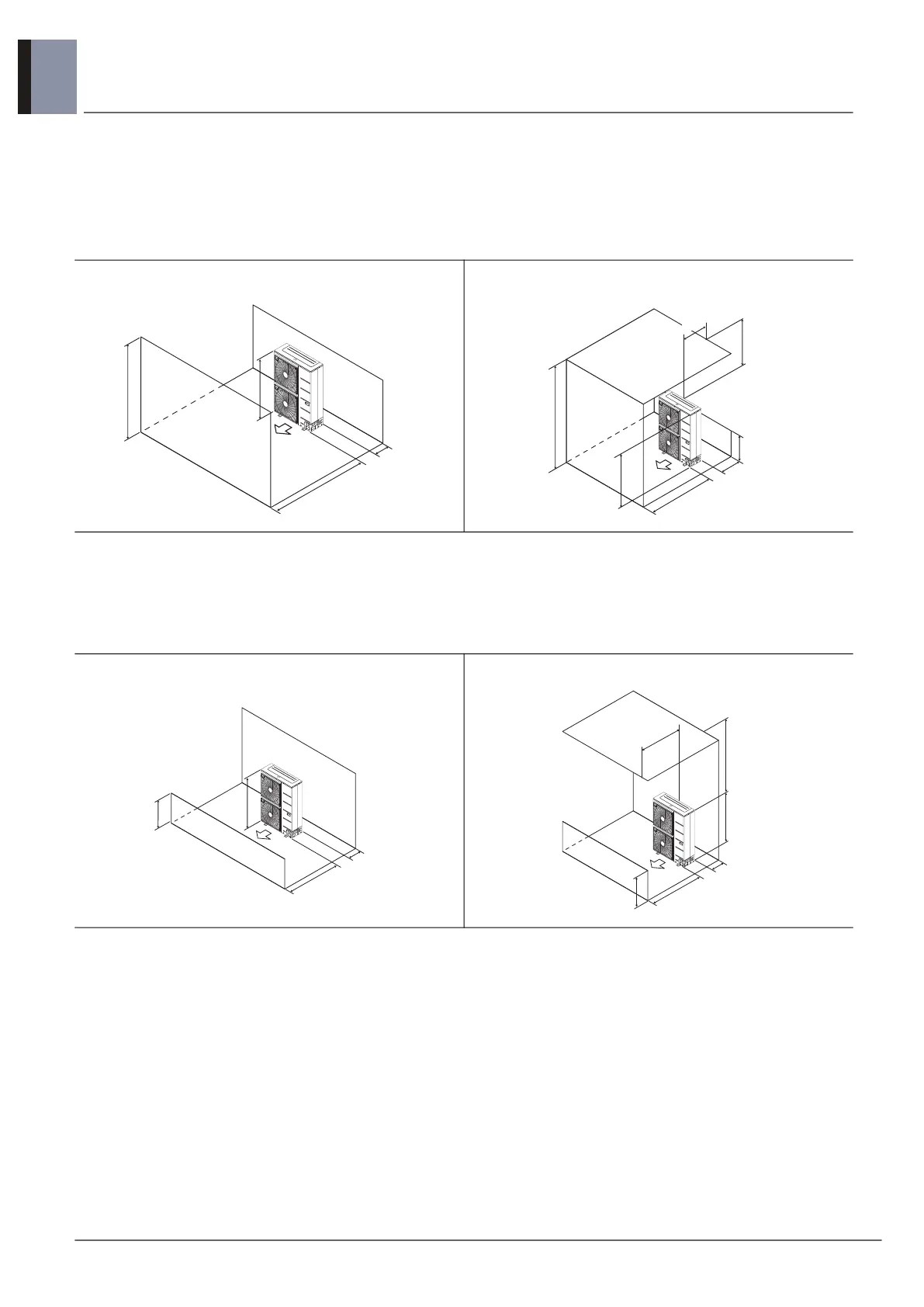 ) of obstacles on the suction side is higher than the unit height (H),
