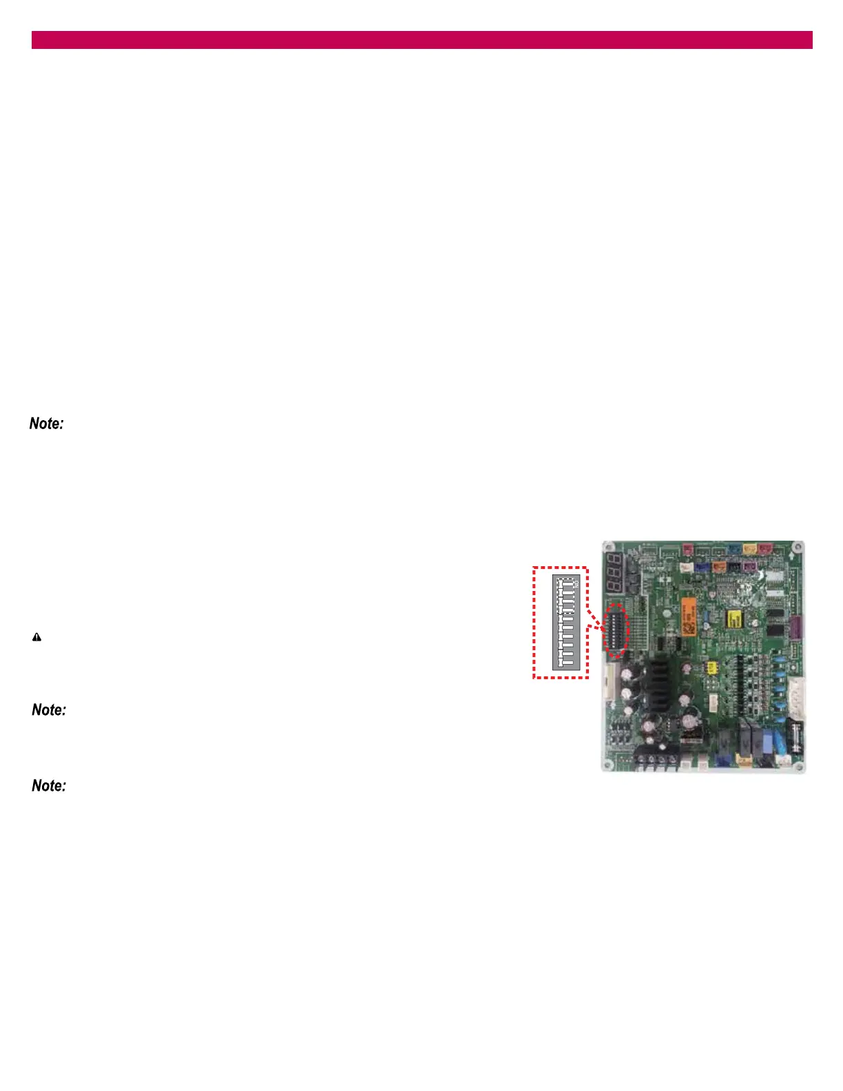 the system, setting the applicable DIP switches on the PCB of the outdoor unit, and then