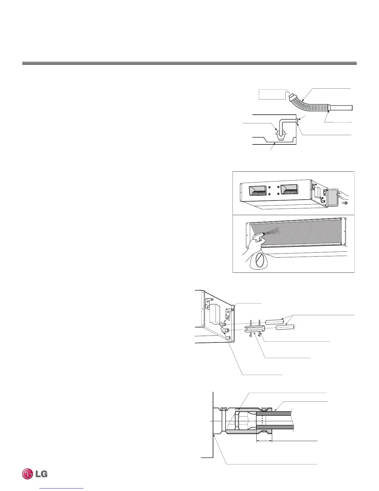 • Connect (field supplied) flexible drain hose to the field-installed drain piping; leave it as