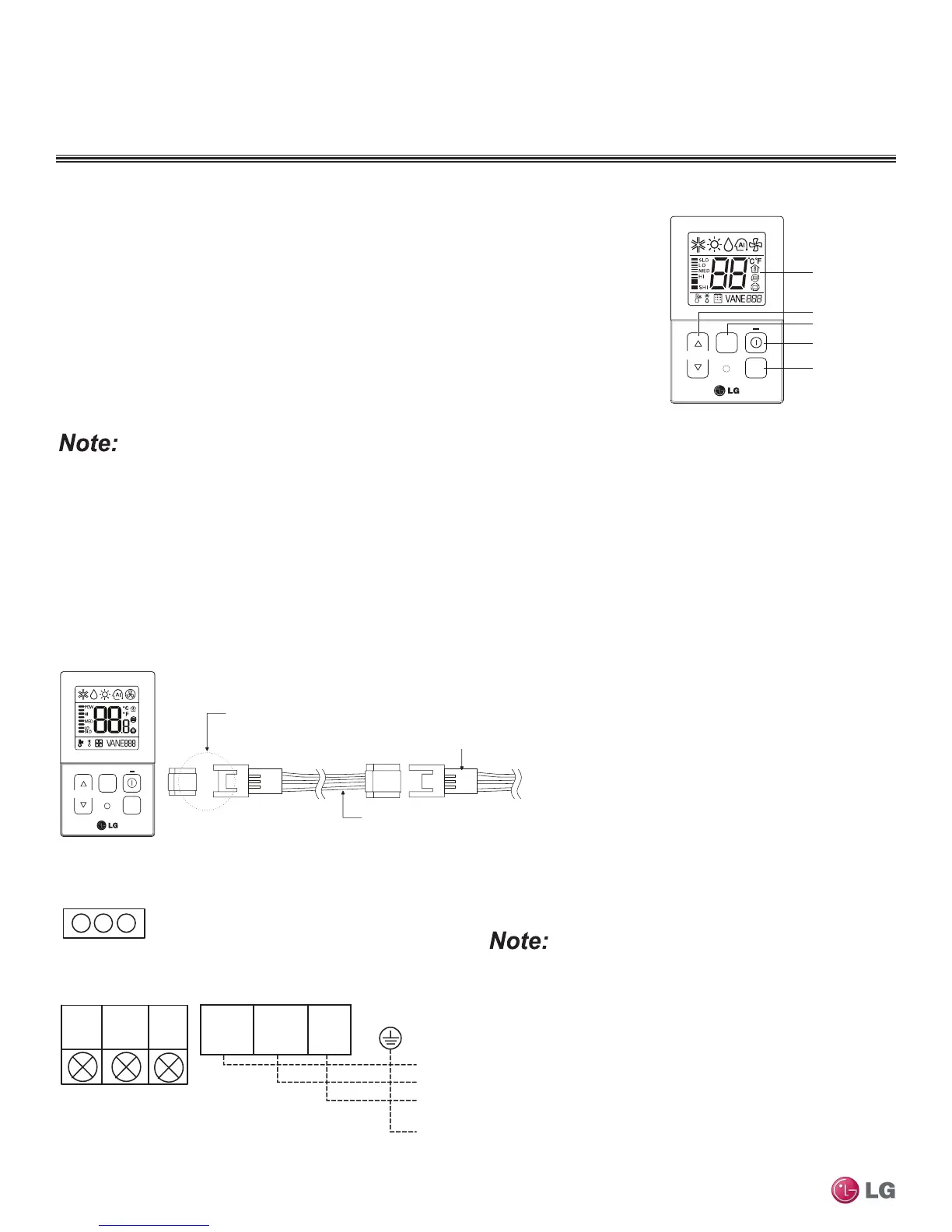 1. LG Wired Remote Extension Cable with Molex plug (PZCWRC1; sold separately) that connects to the CN-REMO terminal on the indoor