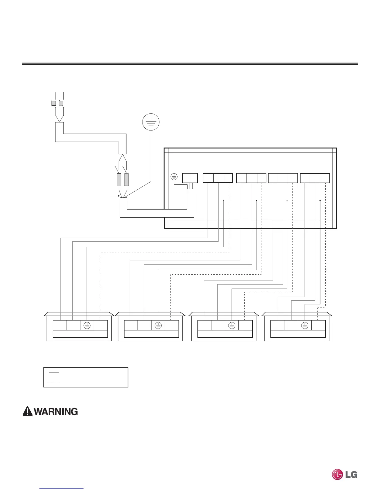 • Ground wiring is required to prevent accidental electrical shock during current leakage, communication problems from electrical