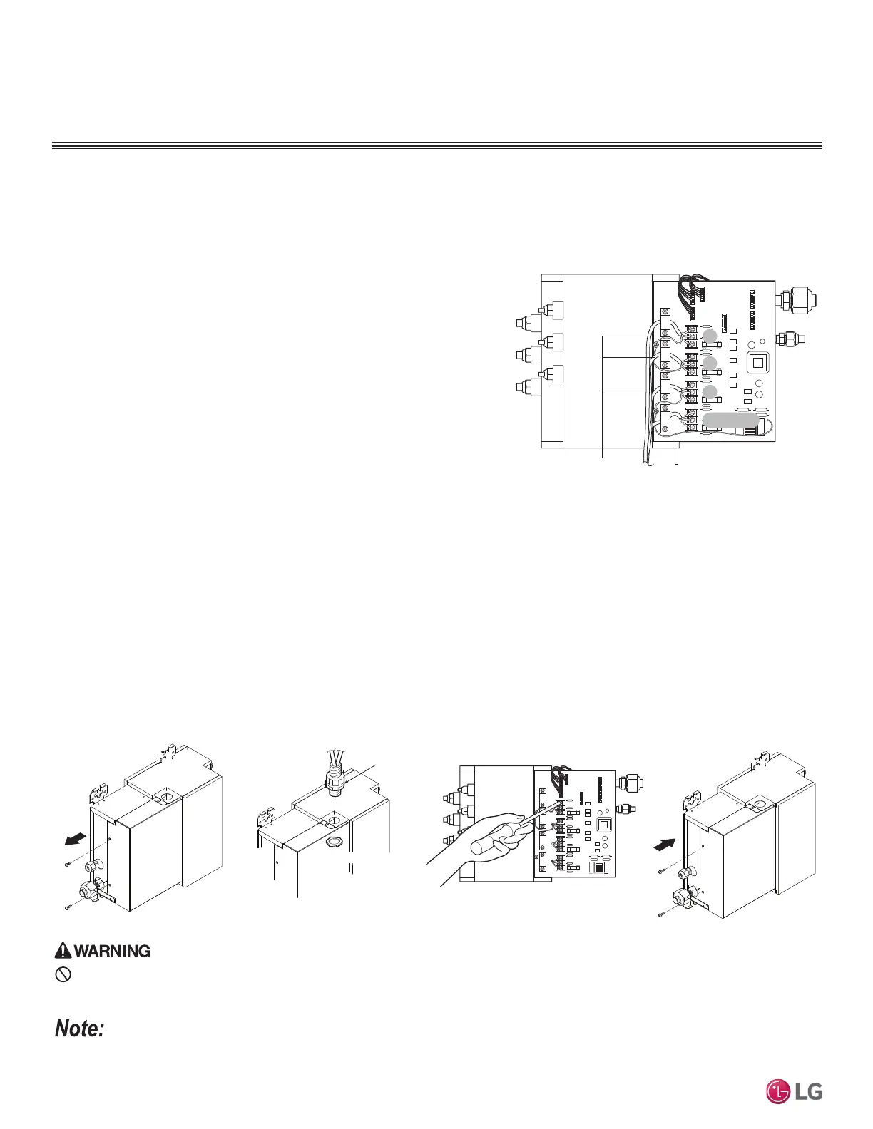 4. Replace the branch distribution unit control cover following the arrows in the diagram. Tighten the two (2) screws to finish (Step 4).