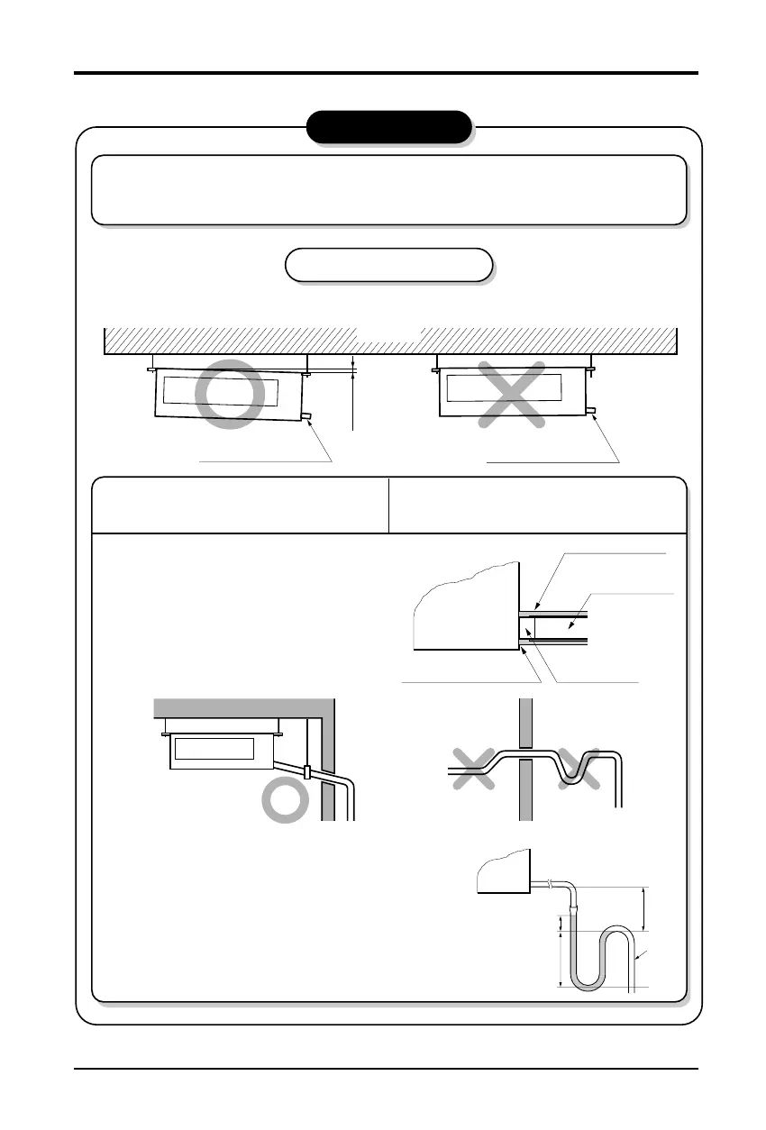 1. Install declination of the indoor unit is very important for the drain of the duct type air