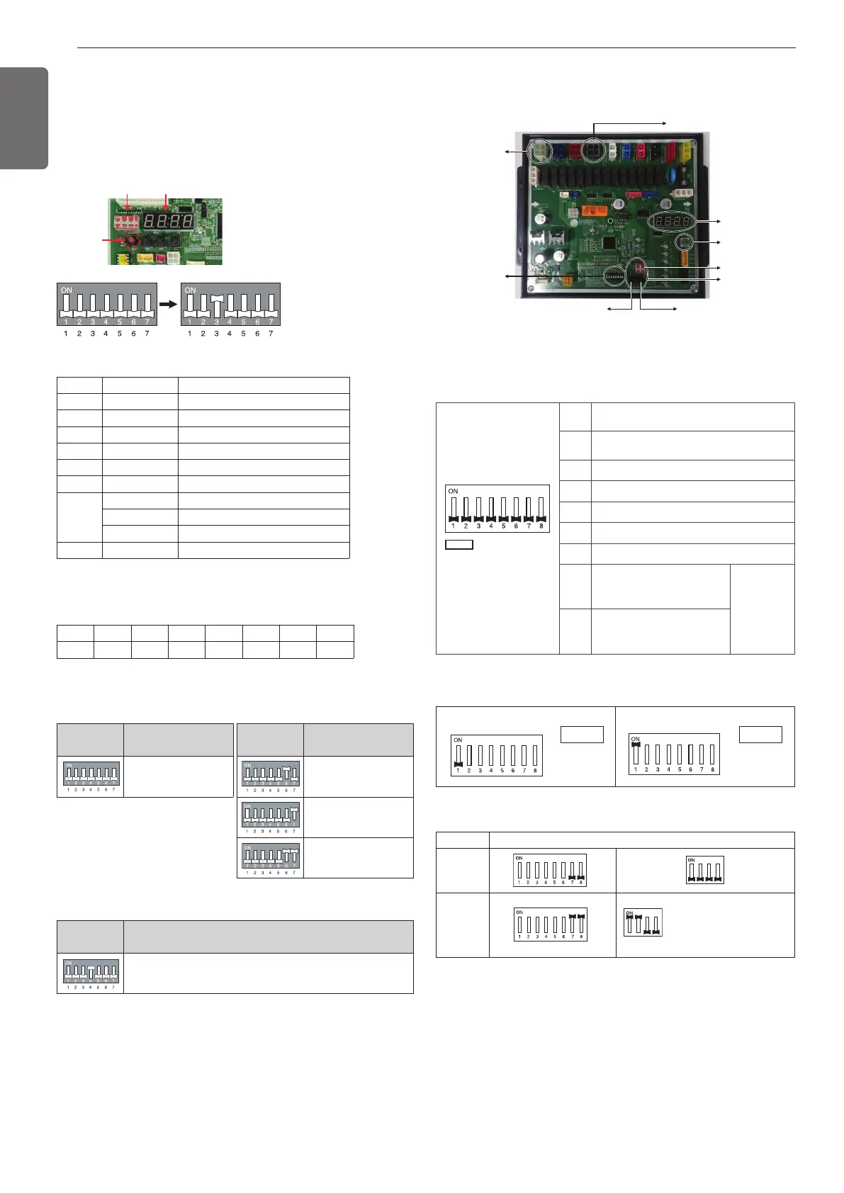 In the factory setting, main PCB DIP switch setting is all “OFF”.