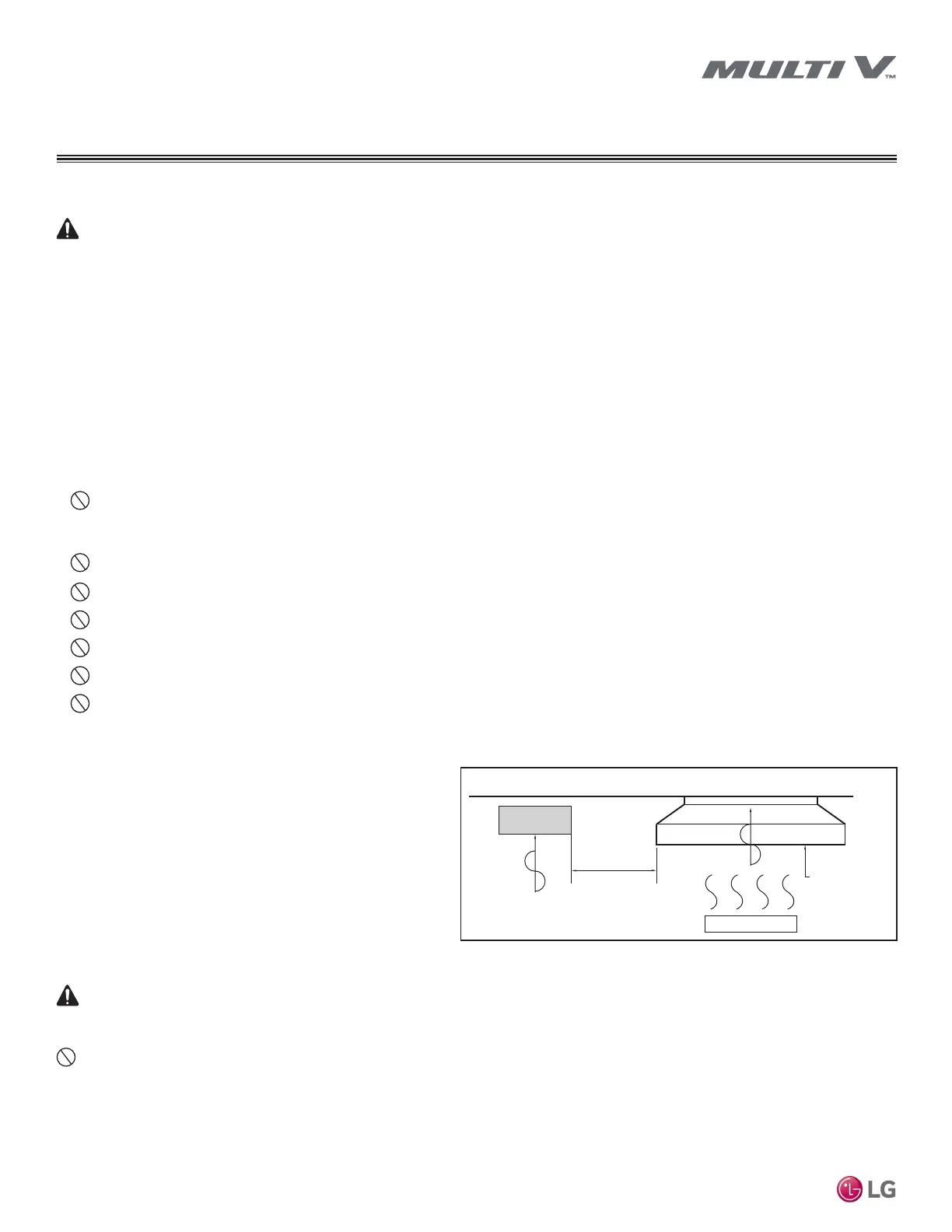 To avoid the possibility of re, do not install the unit in an area where combustible gas may generate, ow, stagnate, or leak. Failure to do so will
