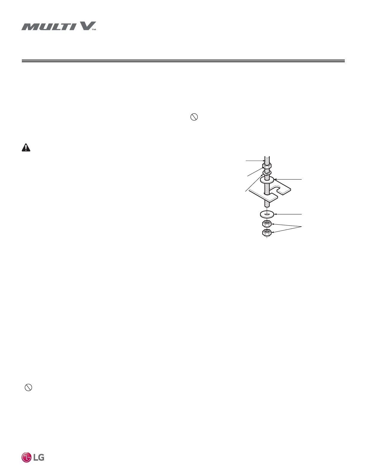 • Securely install threaded rod hangars (bolts) and hardware to prevent