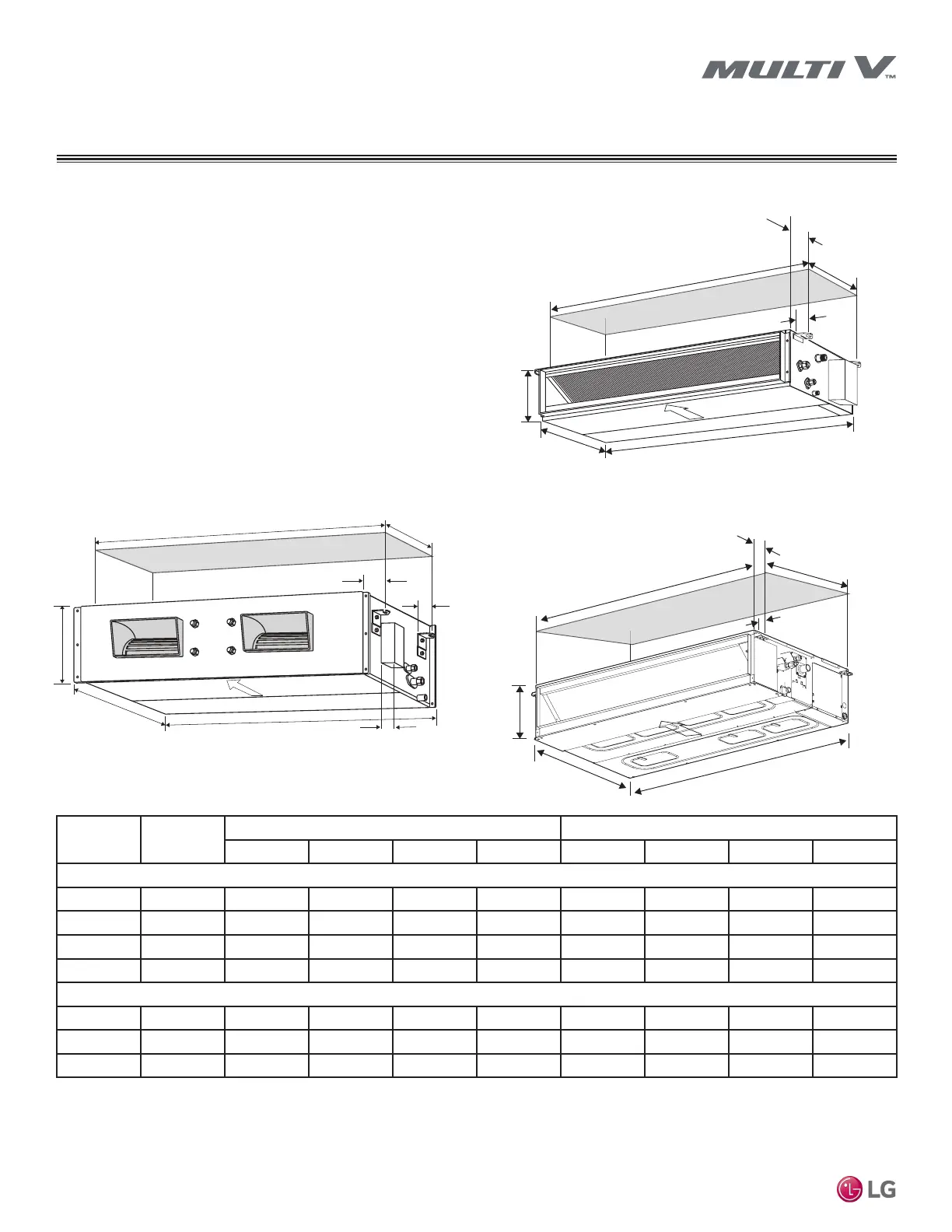 Figure 10: Low-Static Ducted Indoor Unit Dimensions.