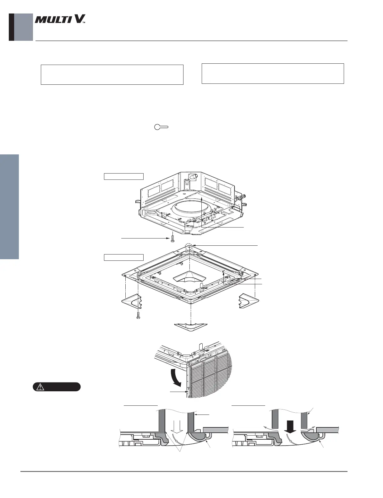 1. Temporarily fix two decoration panel fixing screws (hexagon M5 screw) on the unit body. (Tighten by