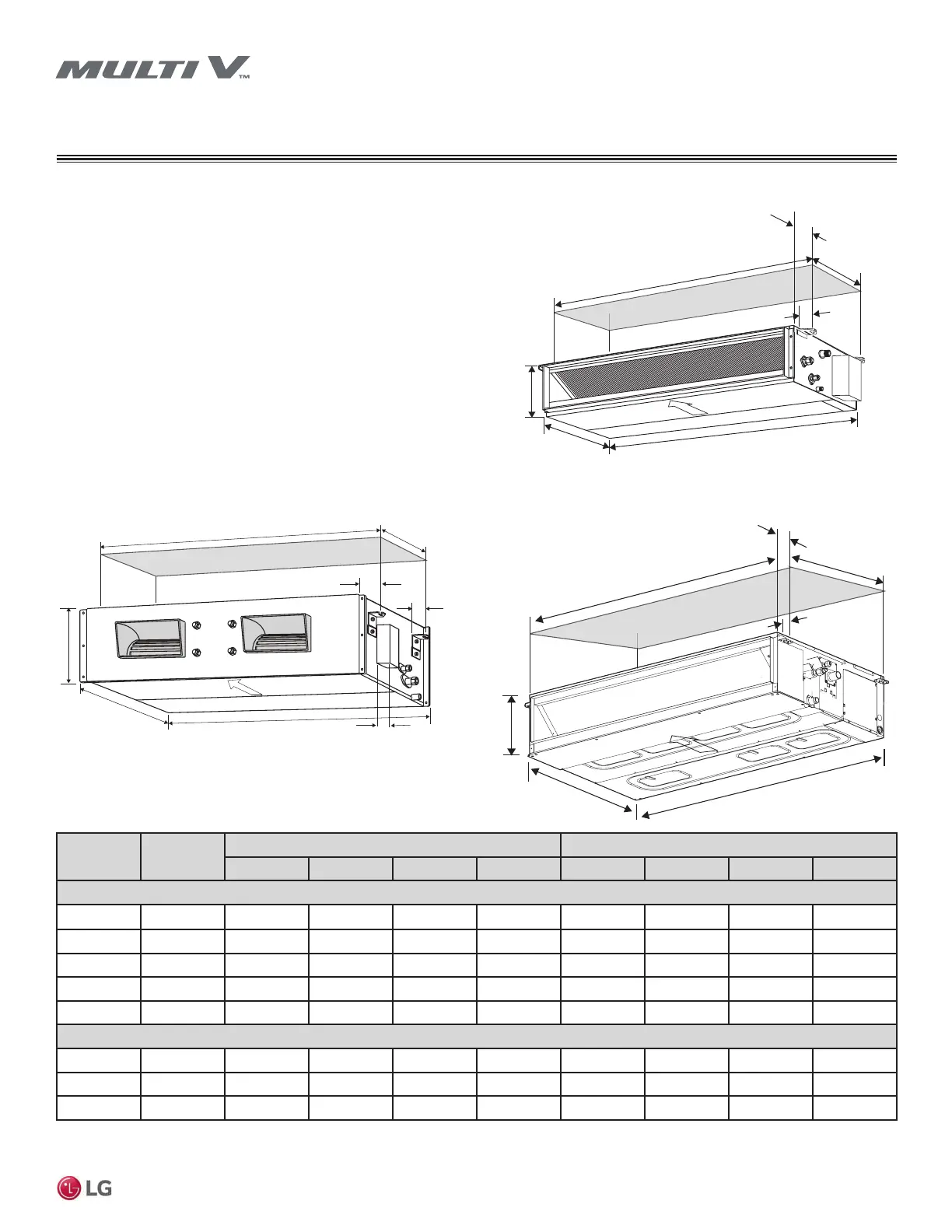 Figure 13: Low-Static Ducted Indoor Unit Dimensions.
