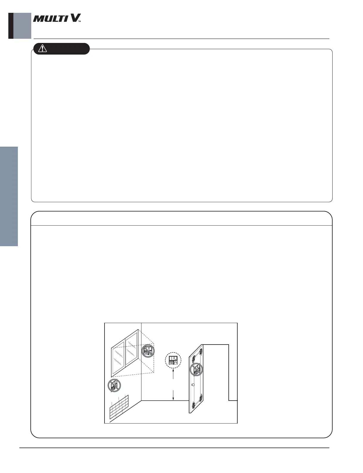 • Since the room temperature sensor is in the remote controller, the remote controller box should be installed in a place away
