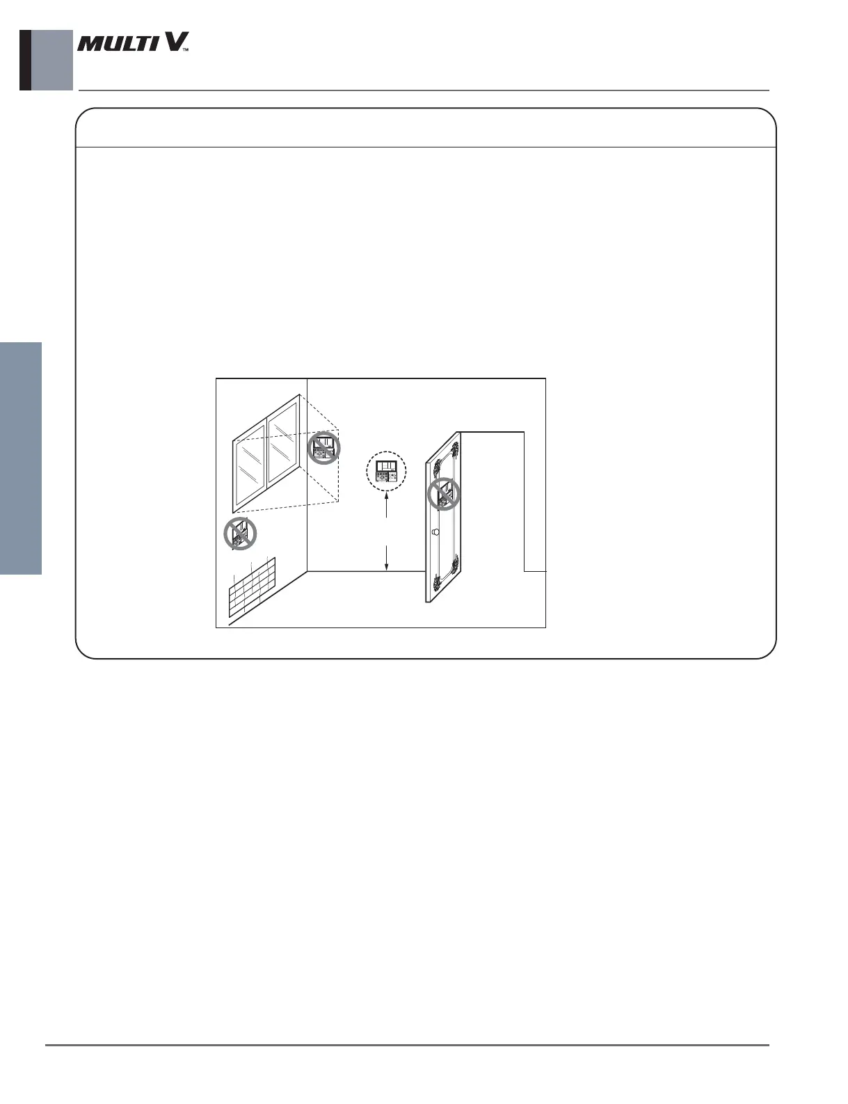 • Since the room temperature sensor is in the remote controller, the remote controller box should be installed in a place