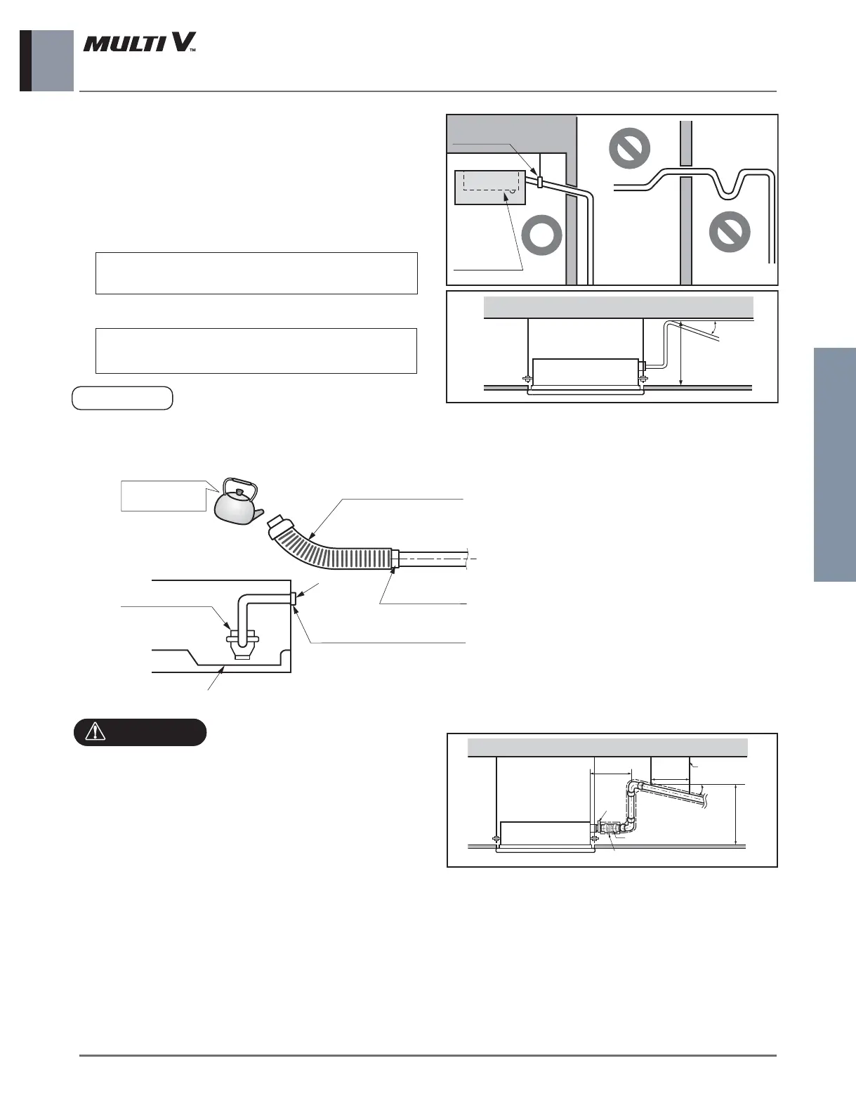 • Drain piping must have down-slope (1/50 to 1/100): be sure