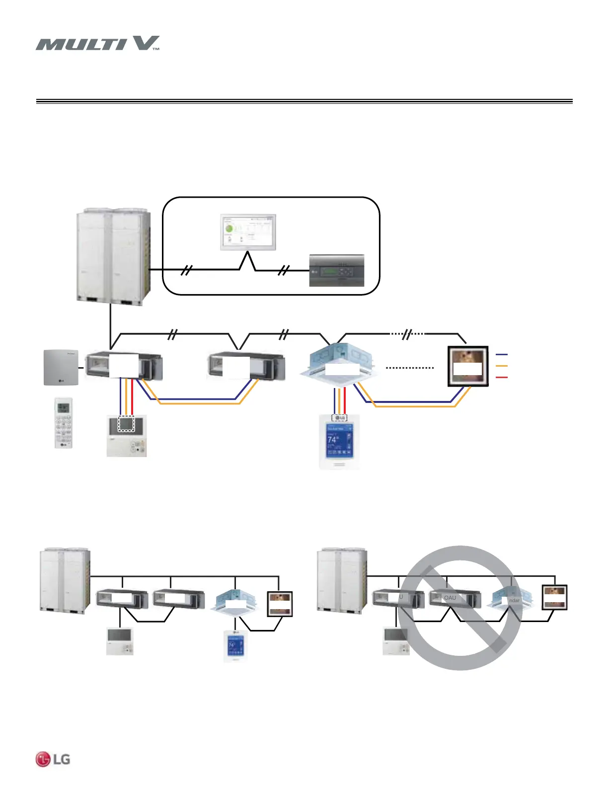 Figure 81: Correct and Incorrect Group Control Conguration with Standard Indoor Units and Outside Air Units.