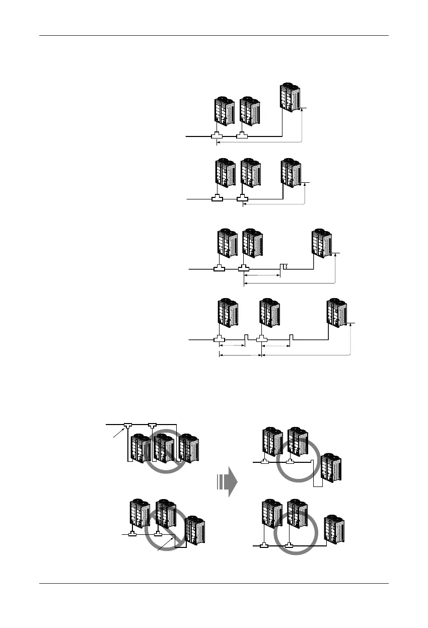 • If the distance between the outdoor units becomes more than 2m, apply Oil Traps between the gas pipes.