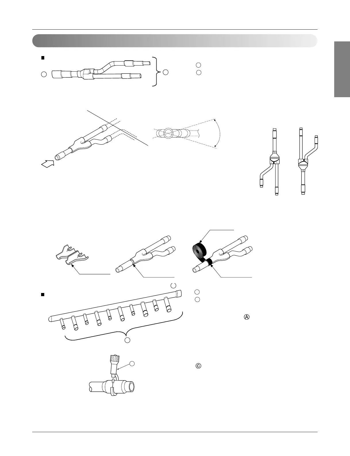 • Ensure that the branch pipes are attached horizontally or vertically (see the diagram below.)