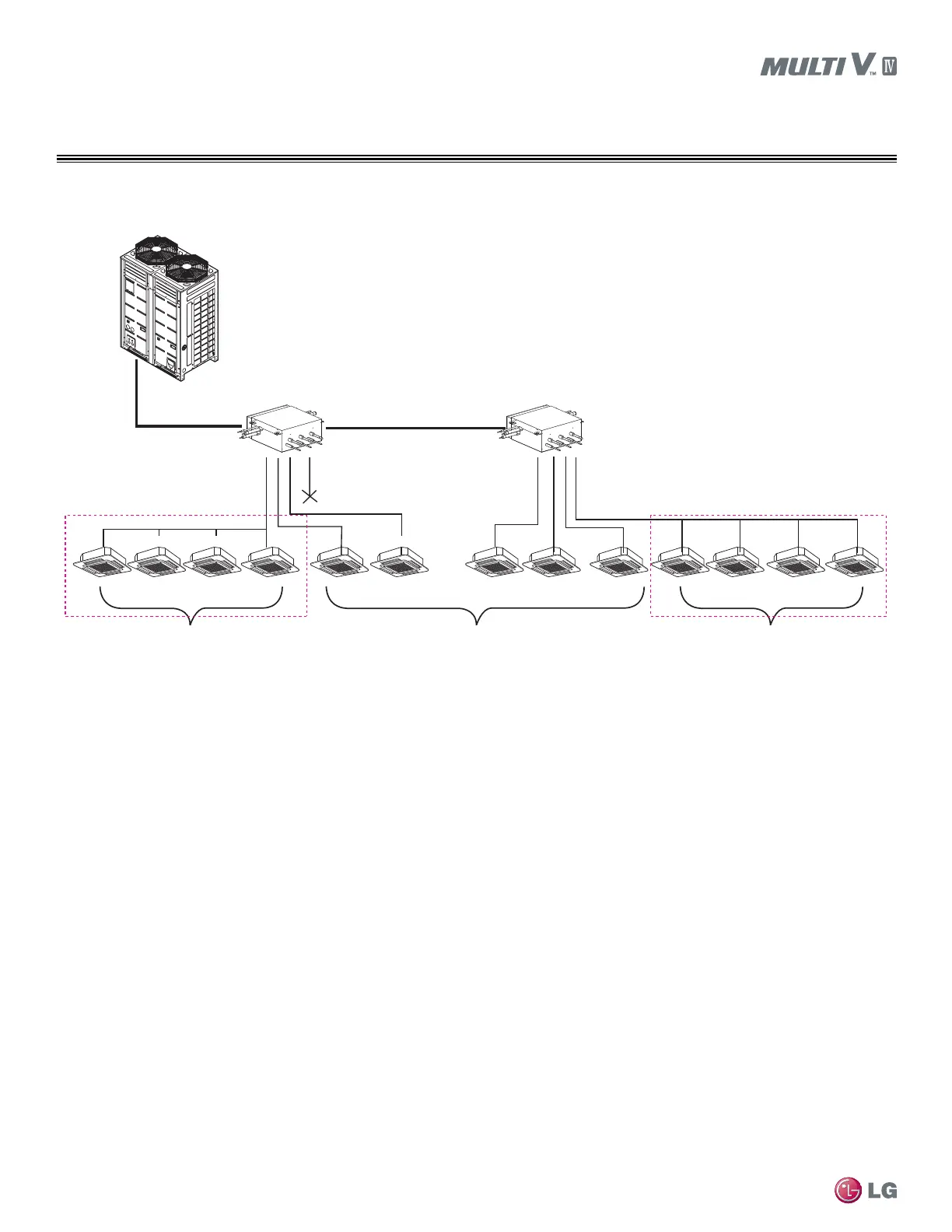 • One heat recovery unit branch pipe can support a maximum of 54,000 Btu/h total indoor unit cooling capacity.