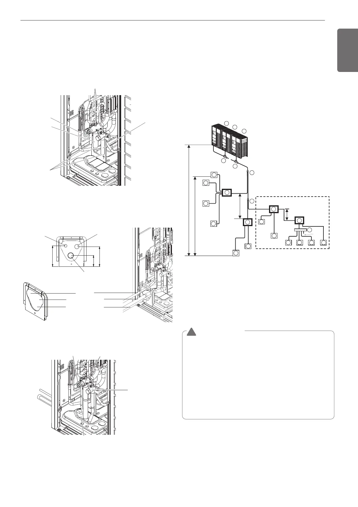 • Piping length from outdoor branch to outdoor unit ≤ 10 m (33 ft),