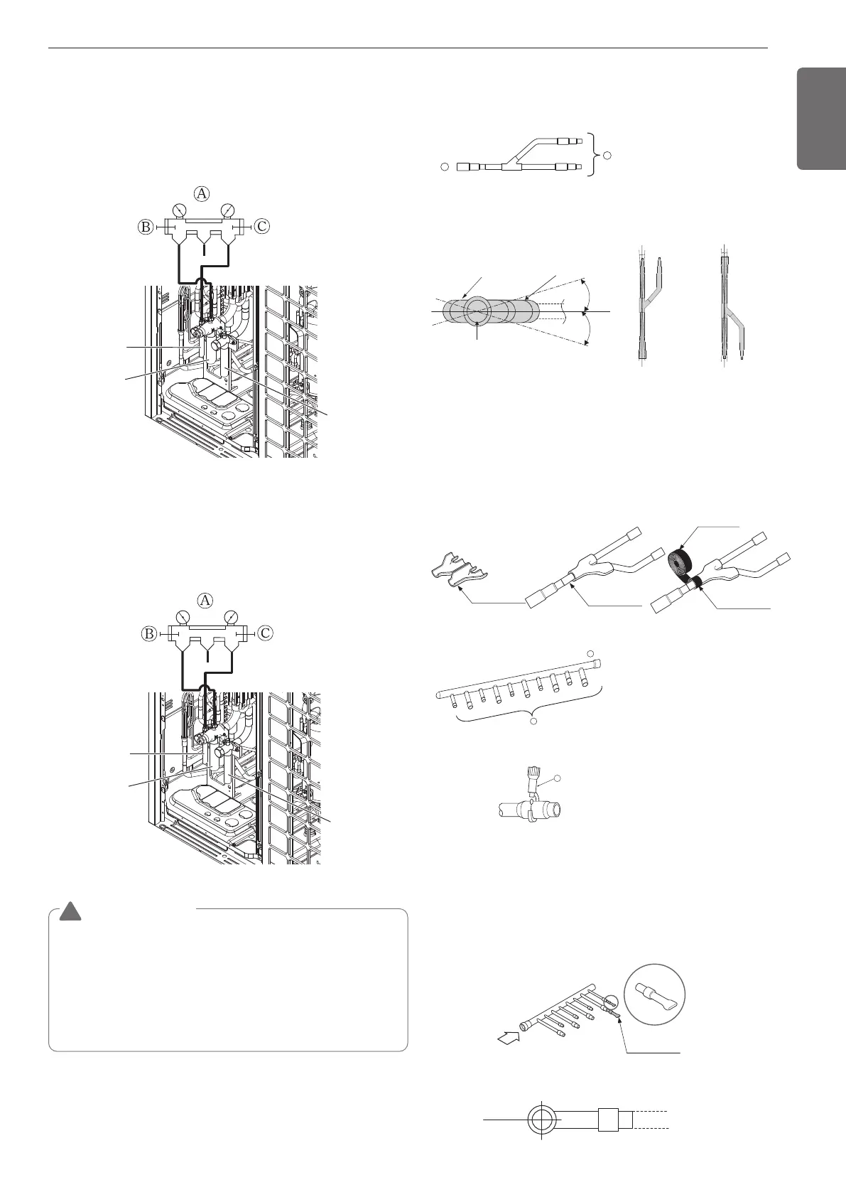 • Branch pipe should be insulated with the insulator in each kit.
