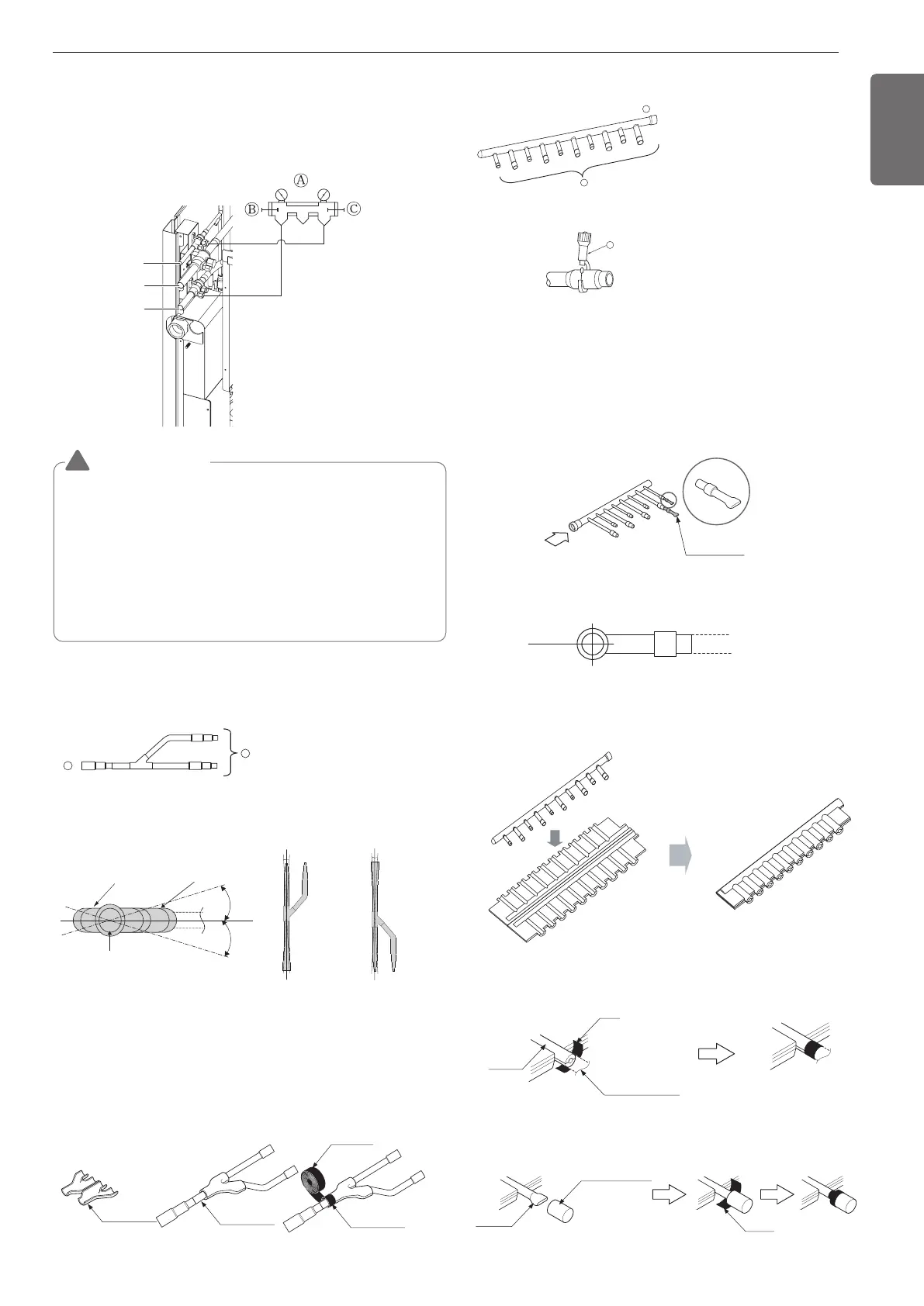 • Branch pipe should be insulated with the insulator in each kit.