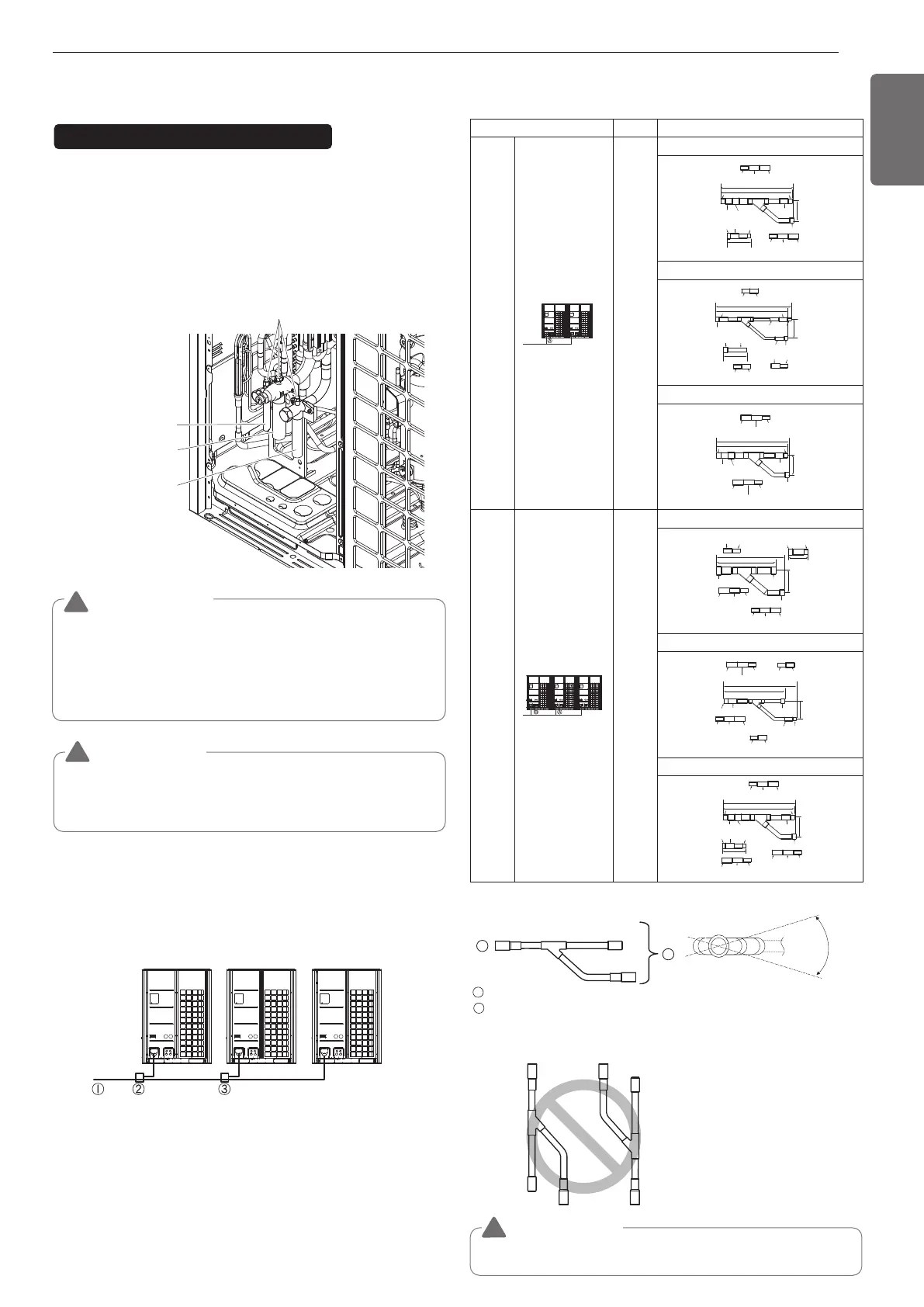 branching pipes, and the refrigerant pipe coming out of the outdoor