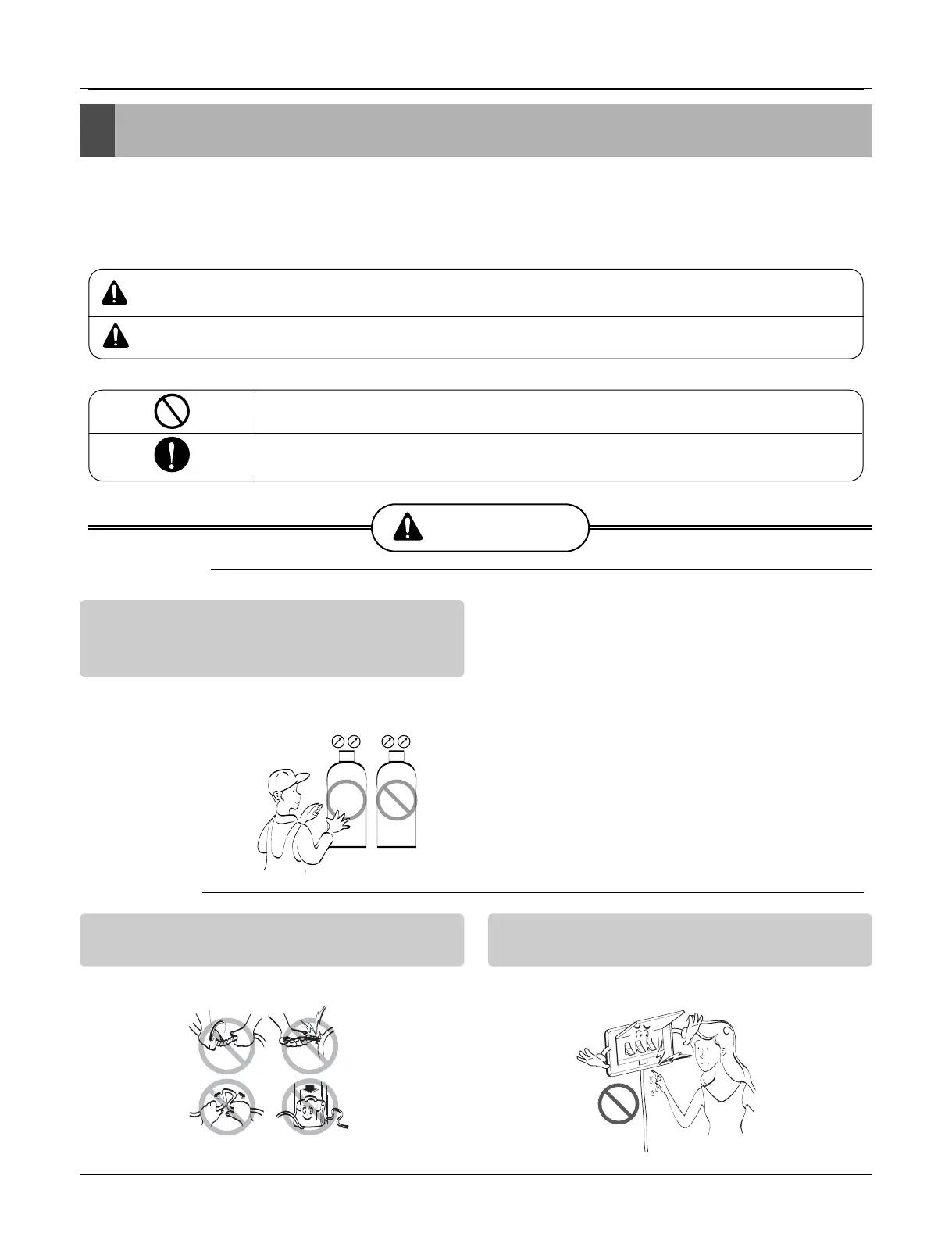 ■ Incorrect operation due to ignoring instruction will cause harm or damage. The seriousness is