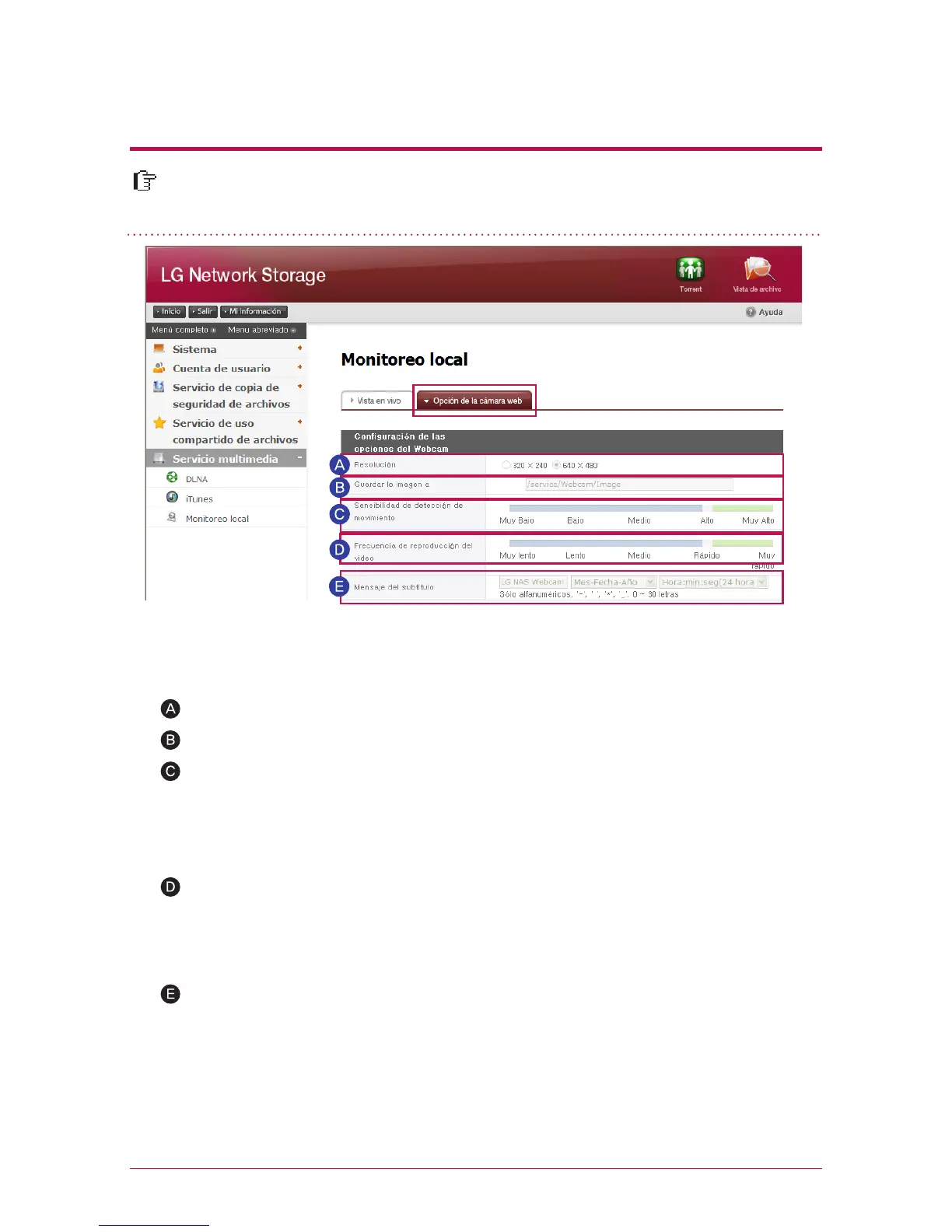 LG Network Storage soporta sólamente la cámara web compatible con UVC (USB