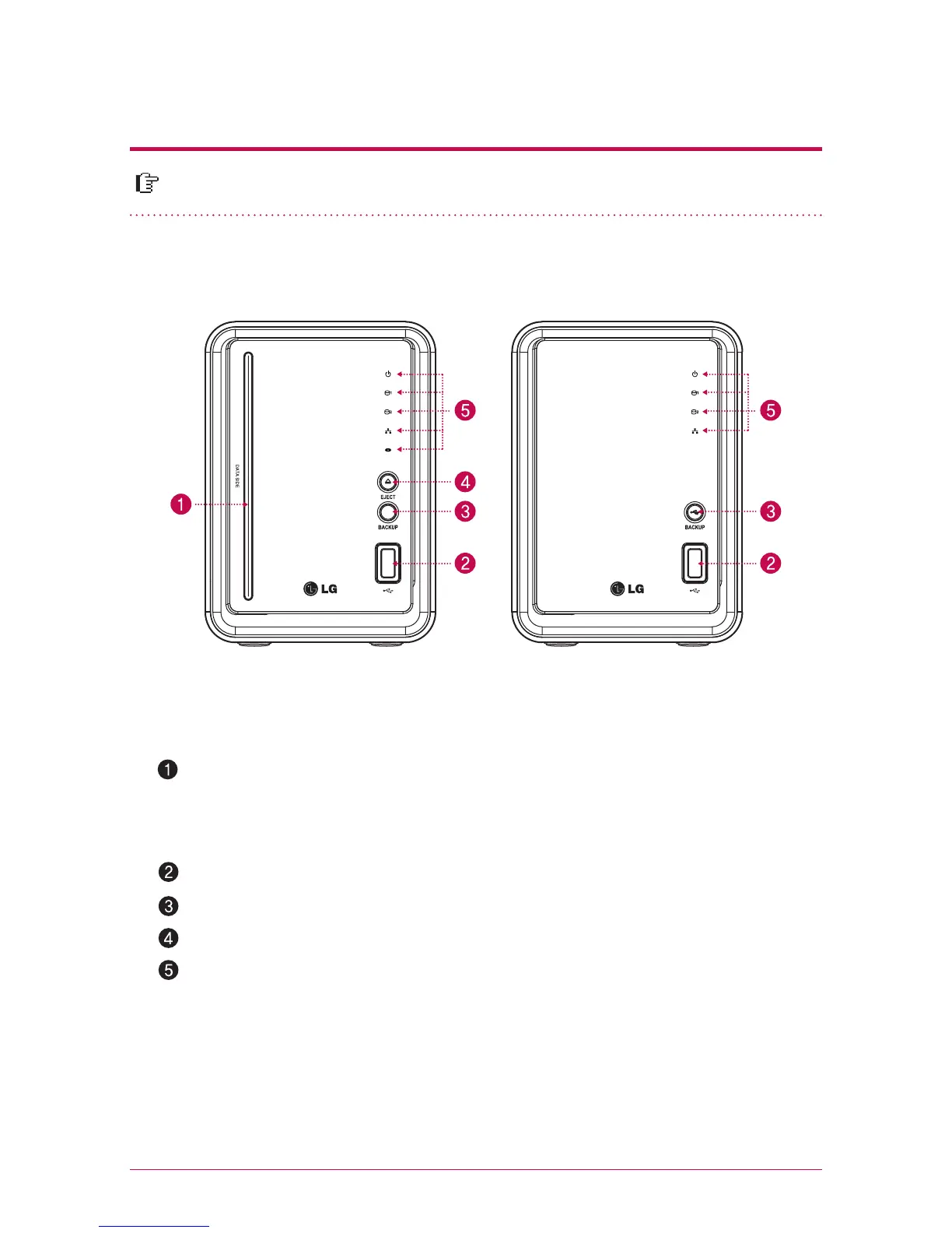 Back-up button : A button to back-up data of a disc or USB onto NAS.