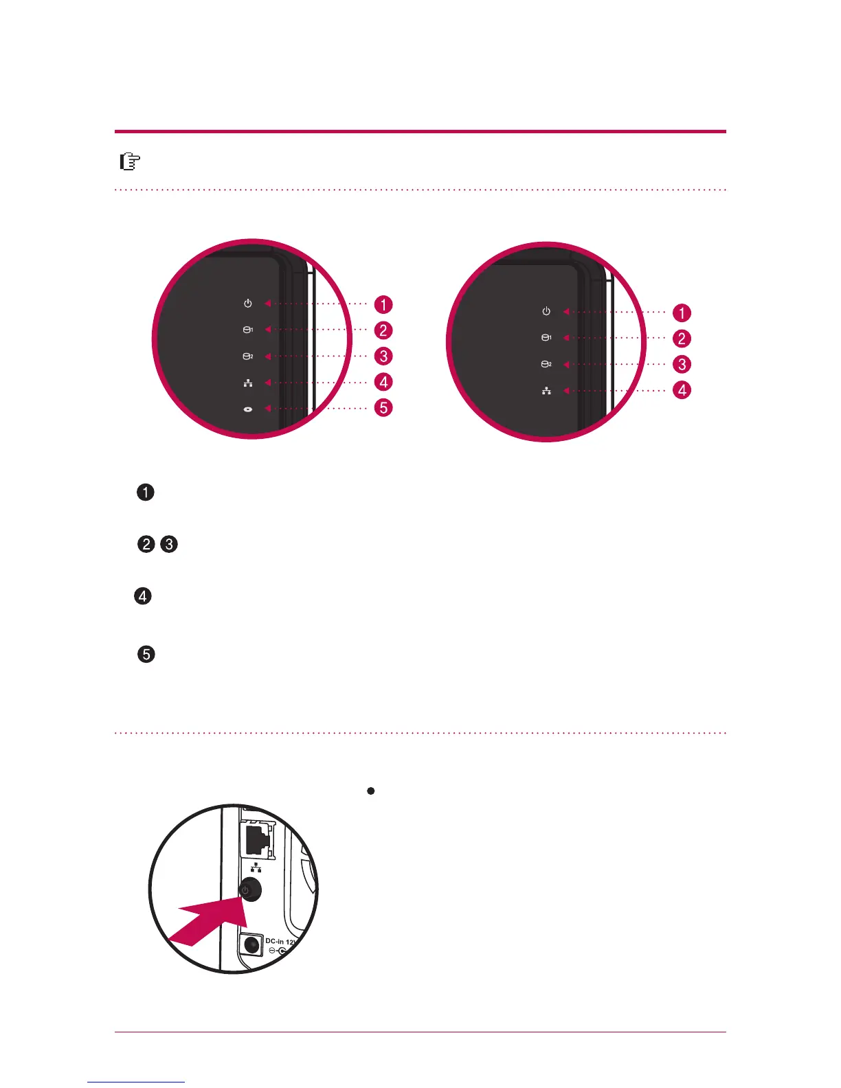 LAN : This displays a connection state of a network. It is switched on when it becomes active
