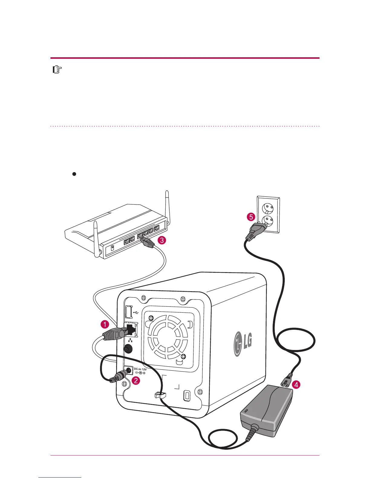 Connect LG Network Storage to user’s PC using hub/switch/router as in the following.