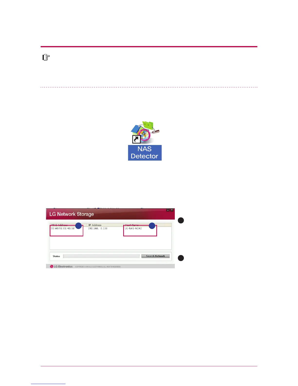 2. ’NAS Detector’ automatically finds LG Network Storage, which is connected to the