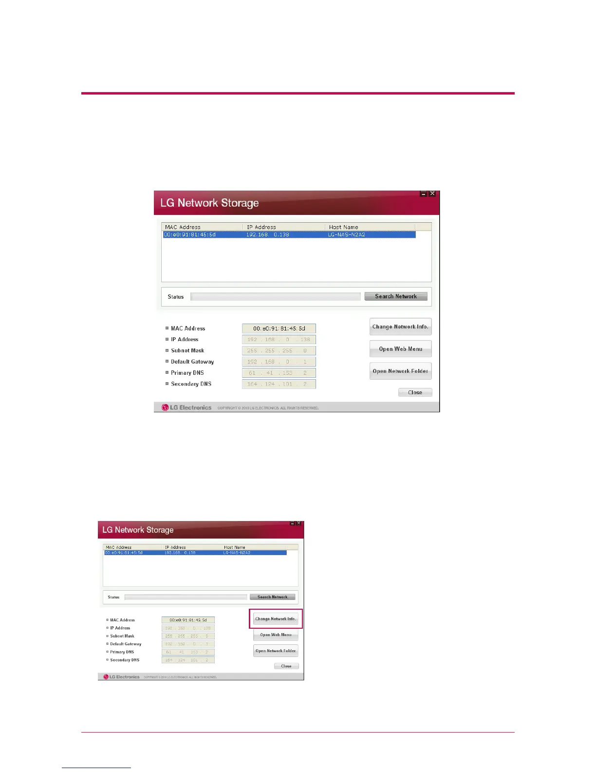 3. When you choose LG Network Storage information that is searched, basic network