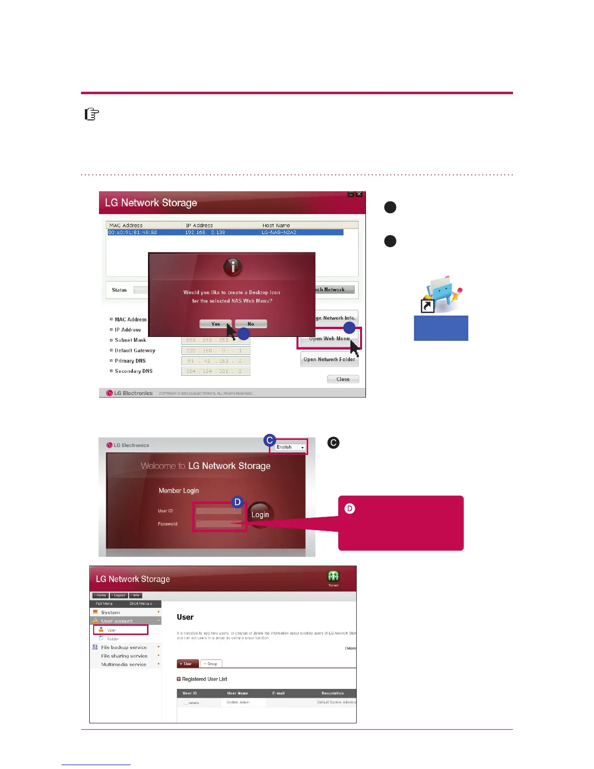 network information of LG Network Storage, share management, service man-