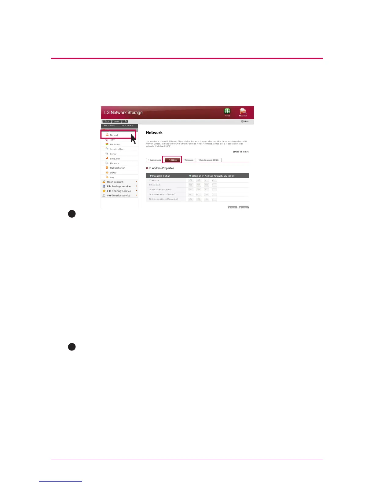 DHCP option, a connection with a web menu is disconnected. Therefore please