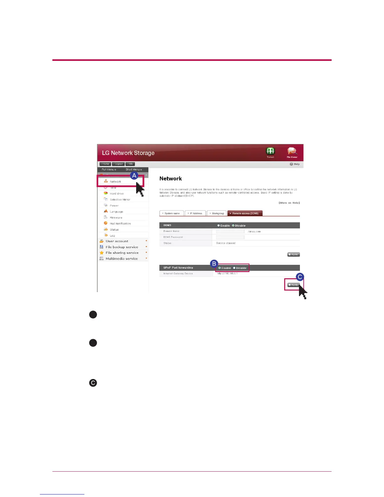LG Network Storage from the outside via DDNS, it should be set up in a way that the request