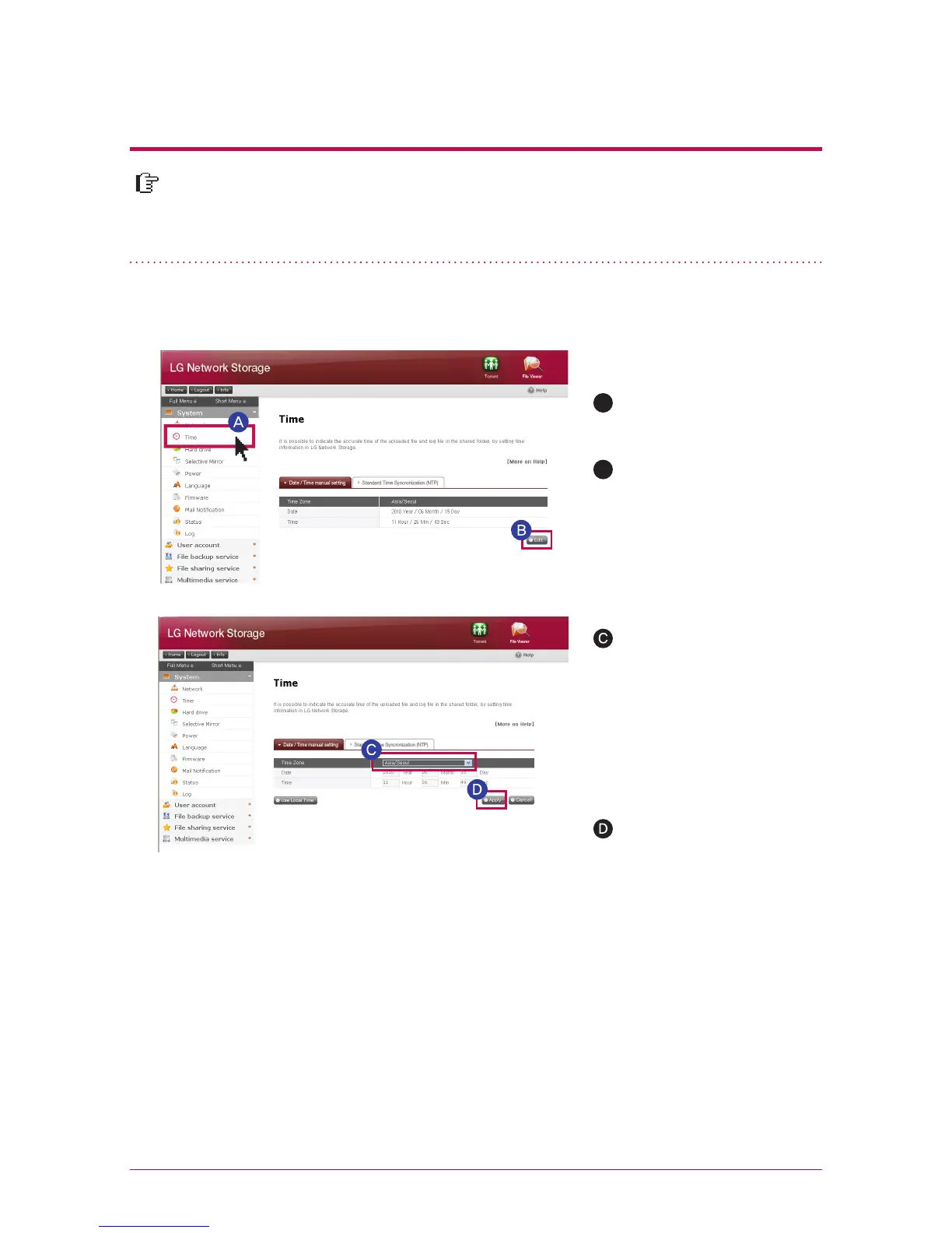 obtaining the correct time from the time server from the outside. It is recommended to