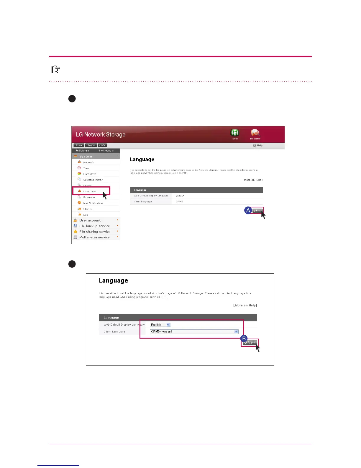 Click on the ‘Edit’ button to set language.