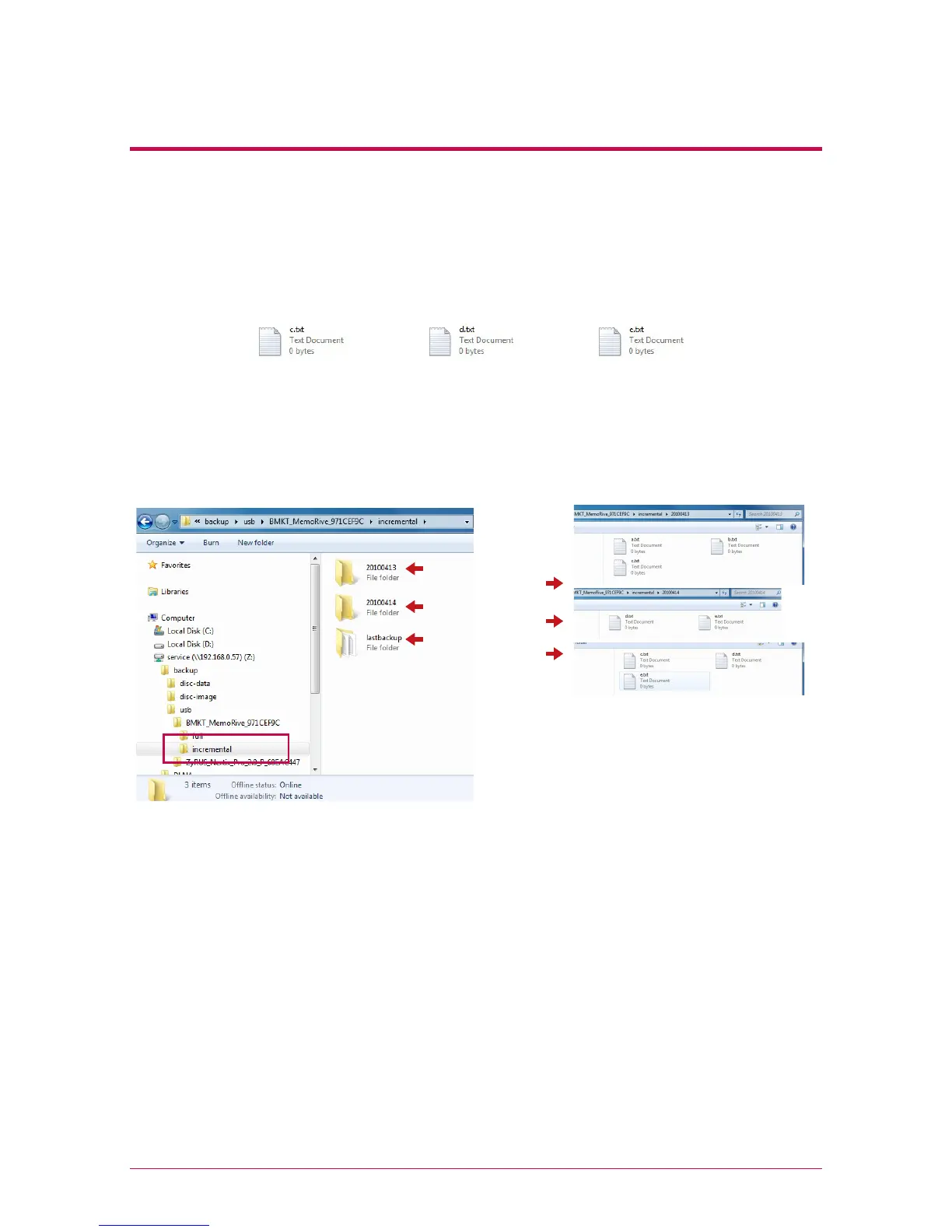 added d.txt and e.txt are saved. And last backup is filled with files that are
