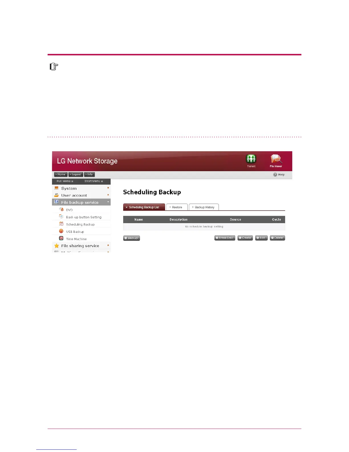 This function allows you to back up and restore the data stored in LG Network