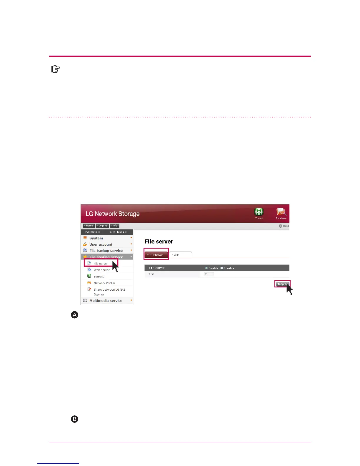 It is a function to set up accessibility of LG Network Storage through FTP/FTPS,