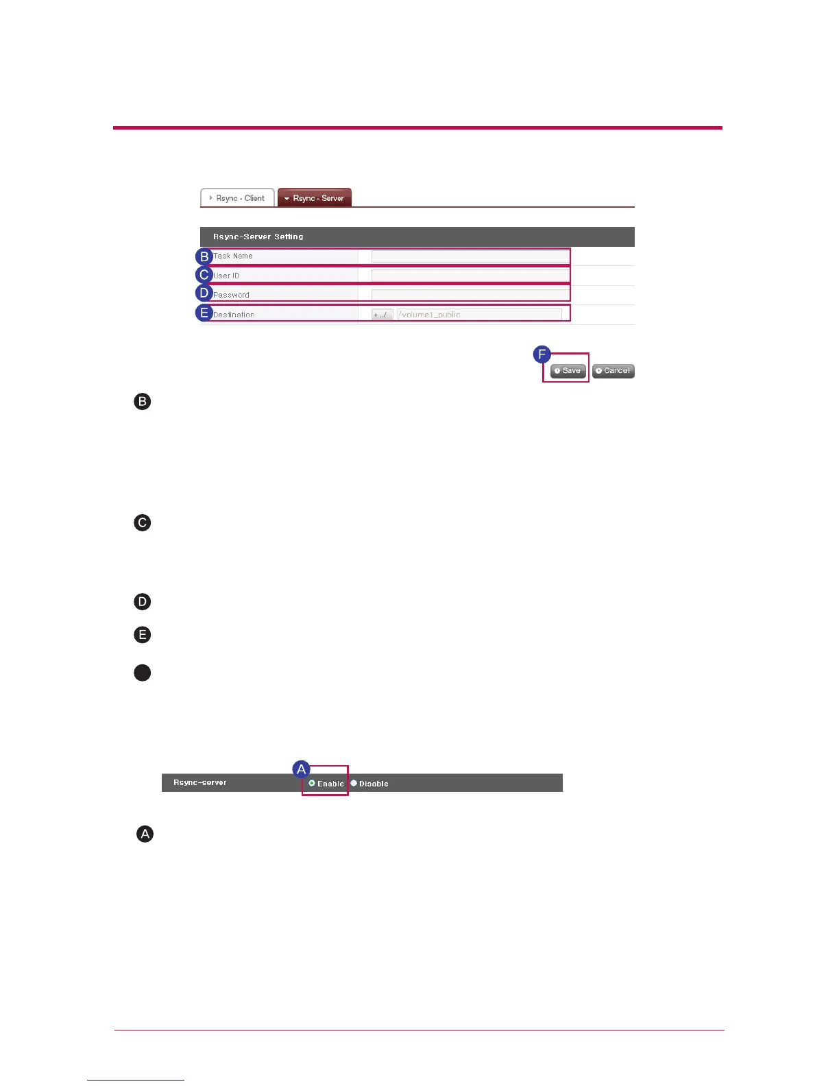 Check ‘Enable’ for the Rsync server to activate a remote data backup service as a server.