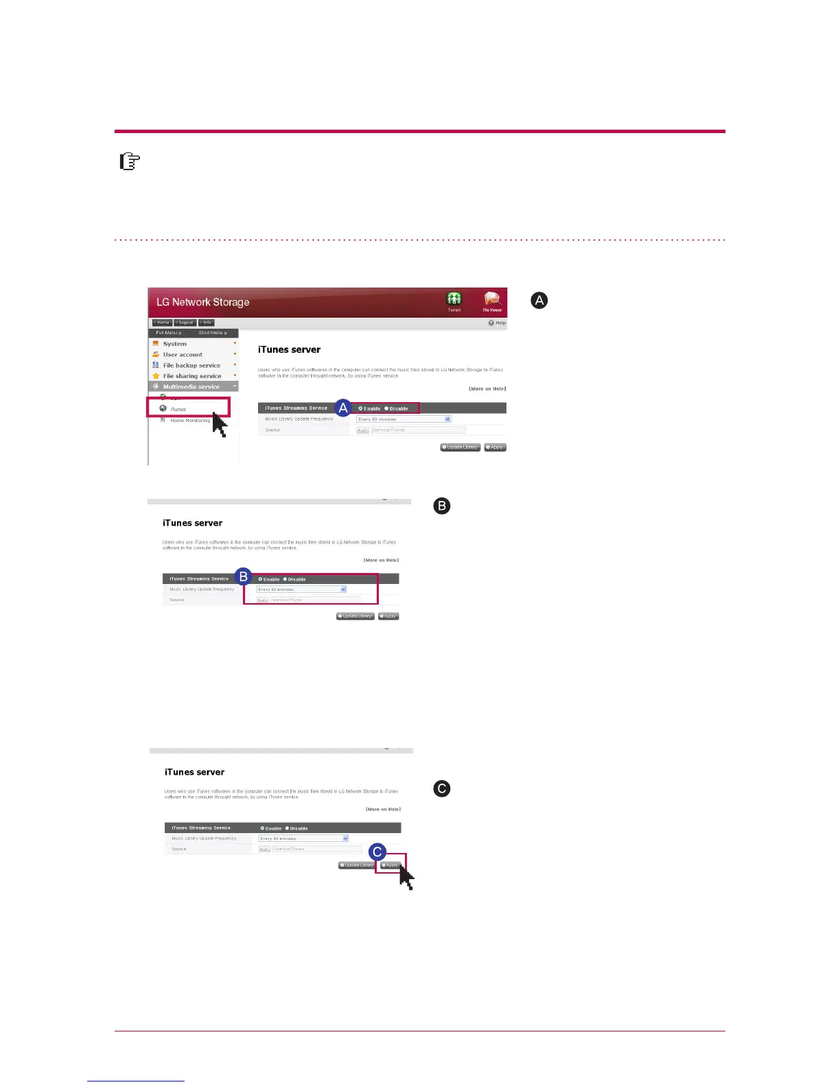 It is possible to play music file saved in LG Network Storage using iTunes service