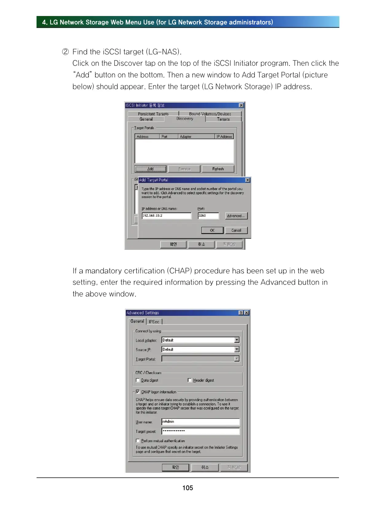 below) should appear. Enter the target (LG Network Storage) IP address.